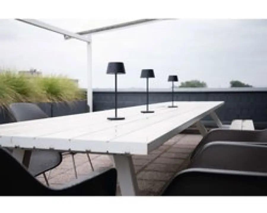 De lamp is spatwaterbestendig (IP54) en daardoor ook geschikt voor overdekte buitenruimtes zoals een balkon. De stevige aluminium constructie maakt de lamp duurzaam en stabiel. Het oplaadstation en de kabel worden meegeleverd, en de lichtbron, batterij en voorschakelapparatuur zijn eenvoudig te vervangen, wat de levensduur van het product verlengt.