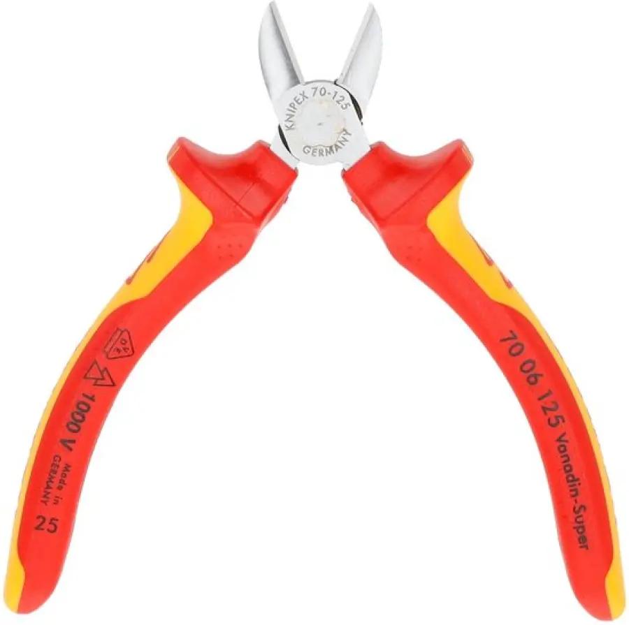 De Knipex 70 06 125 zijsnijtang is jouw perfecte partner voor knipwerkzaamheden, zowel bij zachte als harde draden. Dankzij de precisie-snijkanten en de extra inductief geharde snijvlakken met een hardheid van ca. 62 HRC, snijd je moeiteloos en nauwkeurig. Ook bij koperdraad levert deze tang een keurige snede, zelfs aan de snijtoppen.