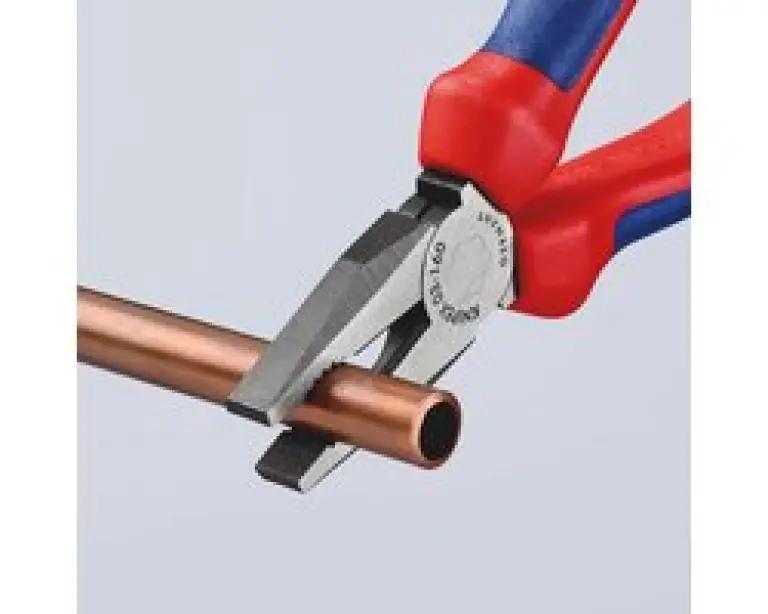 Deze combinatietang is uitgerust met snijkanten die speciaal zijn ontworpen om zowel zachte als harde draden te knippen. De lange snijkanten maken het mogelijk om ook dikke kabels gemakkelijk door te knippen. Daarbij zijn de snijkanten extra inductief gehard met een hardheid van ongeveer 60 HRC, wat zorgt voor een lange levensduur en scherpe prestaties.