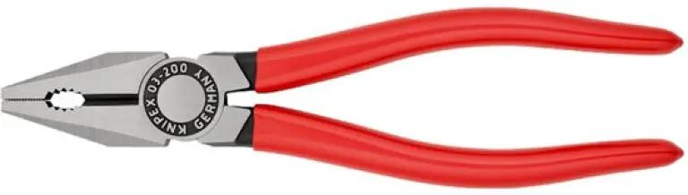 De KNIPEX kombitang is gemaakt van speciaal gereedschapsstaal dat in olie is gehard en ontlaten, wat zorgt voor een lange levensduur en uitstekende prestaties. De kop van de tang is gepolijst voor een strakke en professionele uitstraling.