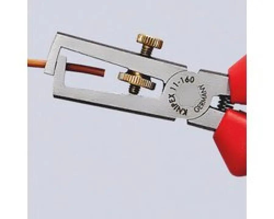 De KNIPEX 11 05 160 kabelstripper is speciaal ontworpen voor het strippen van enkel-, meer- en fijndradige kabels met kunststof- of rubberisolatie. Deze tang is geschikt voor kabels met een maximale diameter van 5,0 mm en geleiderdoorsneden tot 10,0 mm². Zo kun je eenvoudig en nauwkeurig kabels voorbereiden voor verdere werkzaamheden.