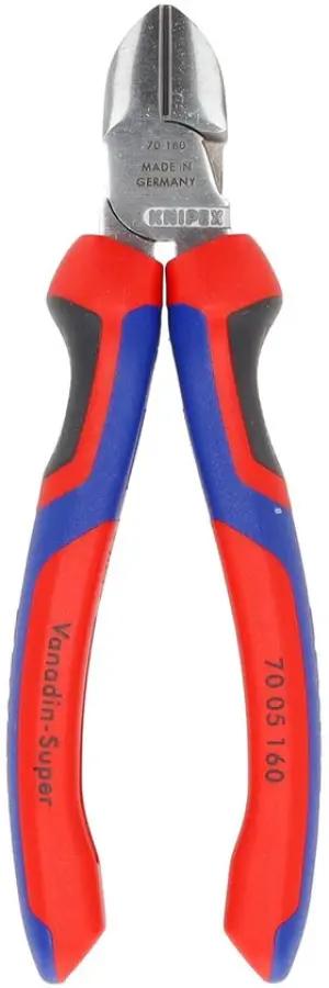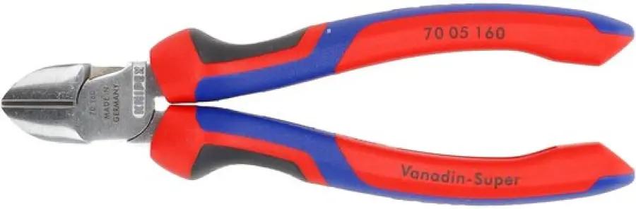 De KNIPEX 70 05 160 diagonaalsnijtang is een Zweeds model zijsnijtang, vervaardigd uit hoogwaardig chroom-vanadiumstaal. Dit staal is in olie gehard voor extra stevigheid en vervolgens verchroomd, wat zorgt voor een lange levensduur en bescherming tegen corrosie. Met een productlengte van 160 mm is deze tang zeer handzaam en geschikt voor diverse snijtaken.