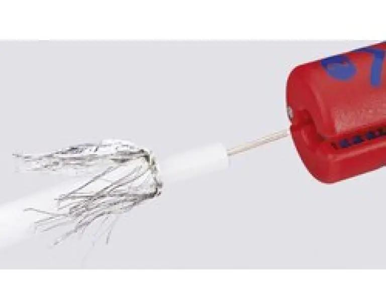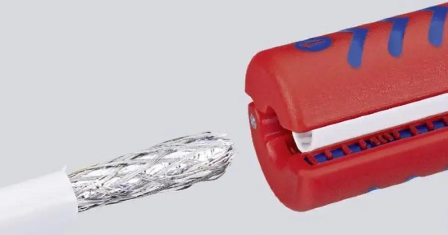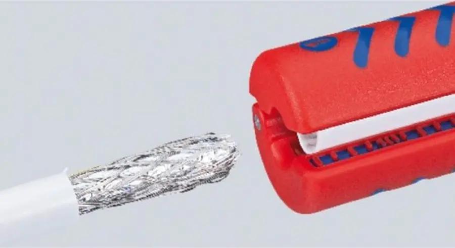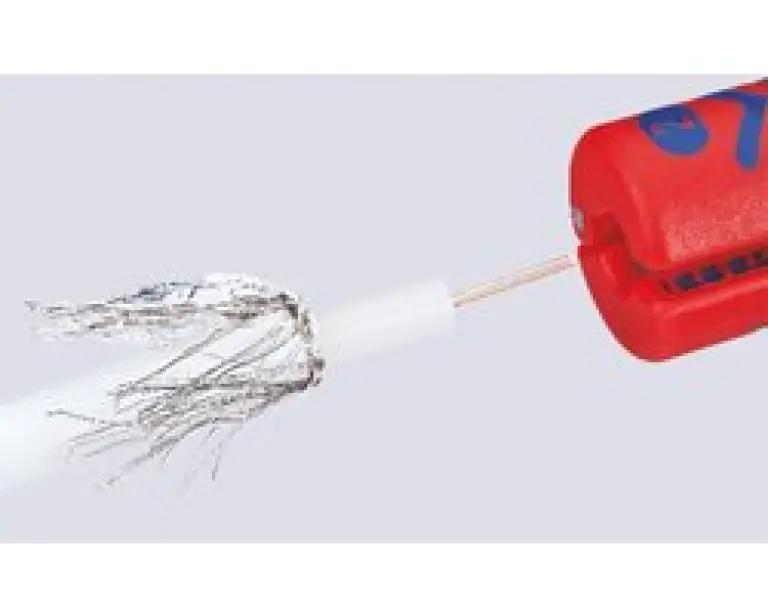 De Knipex 16 60 100 SB kabelstripper is speciaal ontworpen voor het ontmantelen en strippen van alle gangbare coaxkabels met een diameter van 4,8 tot 7,5 mm. Dit maakt hem ideaal voor toepassingen zoals TV- en satellietontvangst. Daarnaast is deze kabelstripper ook geschikt voor het strippen van PVC-flex kabels van 3 x 0,75 mm², waardoor hij veelzijdig inzetbaar is in verschillende situaties.