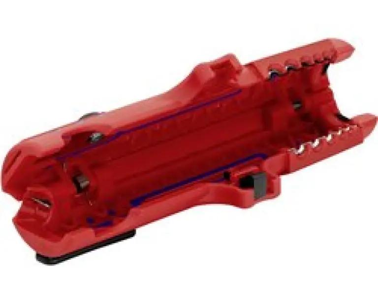De KNIPEX 16 85 125 SB is een handige kabelstripper die is uitgerust met een inwendig, uitschuifbaar mes voor nauwkeurig strippen. Dankzij de geïntegreerde lengtesnijder kun je kabels niet alleen afstrippen, maar ook in de lengte snijden. Dit maakt het werken met kabels extra efficiënt en nauwkeurig.