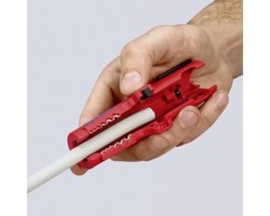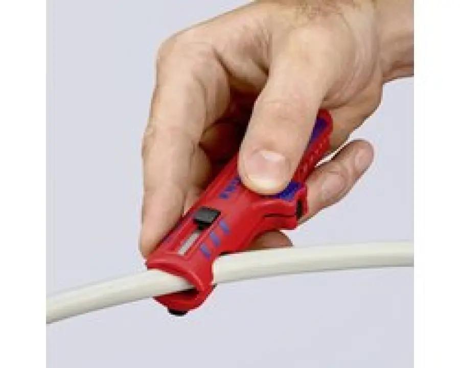 De KNIPEX kabelstripper is ideaal voor het ontmantelen en afstrippen van alle gangbare ronde kabels met een diameter van 8,0 tot 13,0 mm. Denk hierbij aan NYM-kabels van 3 x 1,5 mm² tot 5 x 2,5 mm². Ook bij aftak- of verdeeldozen komt deze striptang goed van pas. De tweeschalige, open te klappen constructie zorgt voor een comfortabele bediening, terwijl de openingsveer en pal het werk nog makkelijker maken.