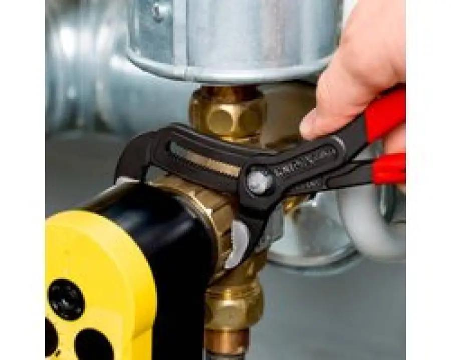 De tang beschikt over handgrepen die prettig in de hand liggen en zijn voorzien van een anti-slip kunststof coating. Dit zorgt ervoor dat je de tang stevig en comfortabel vasthoudt, zelfs tijdens intensief gebruik. Door de zelfklemfunctie glijdt de tang niet van buizen of moeren af, wat niet alleen kracht bespaart, maar ook zorgt voor meer veiligheid en precisie.