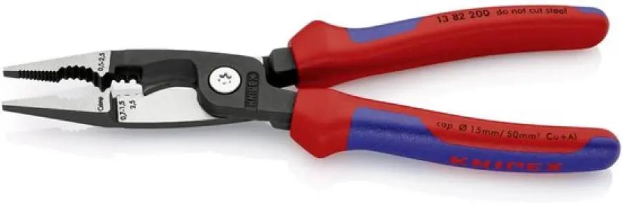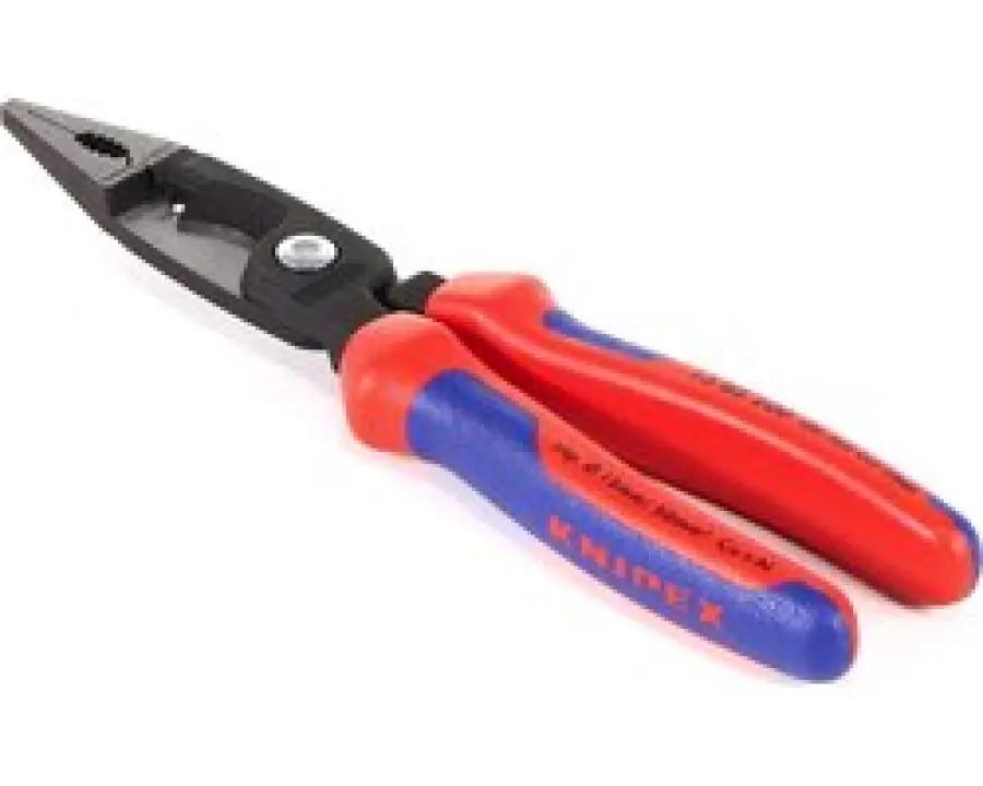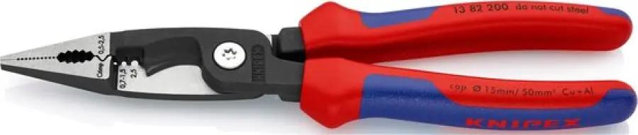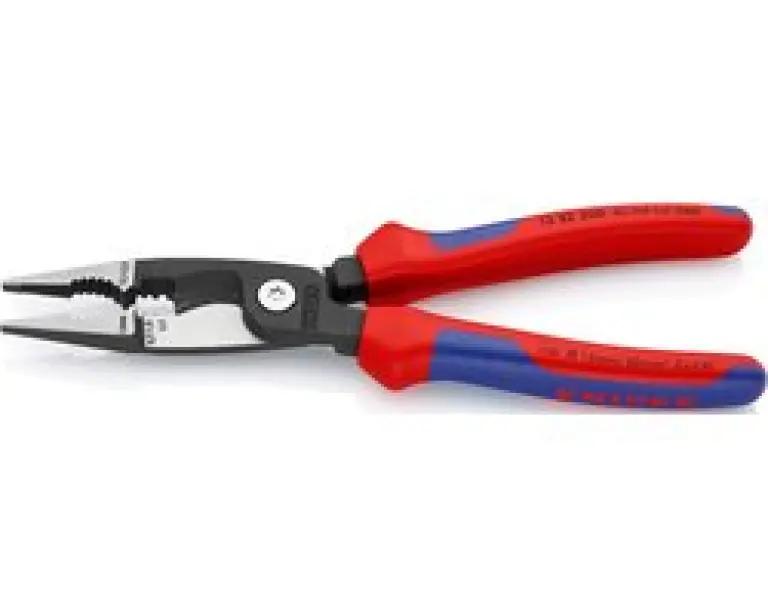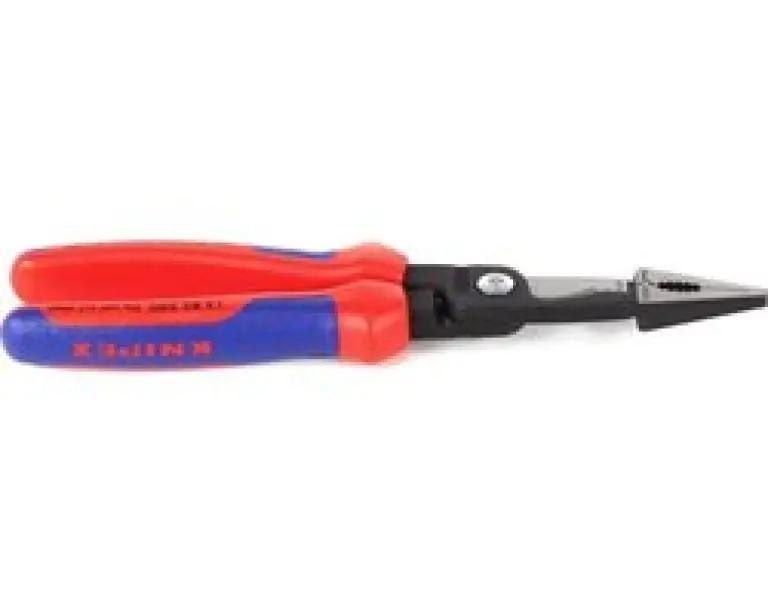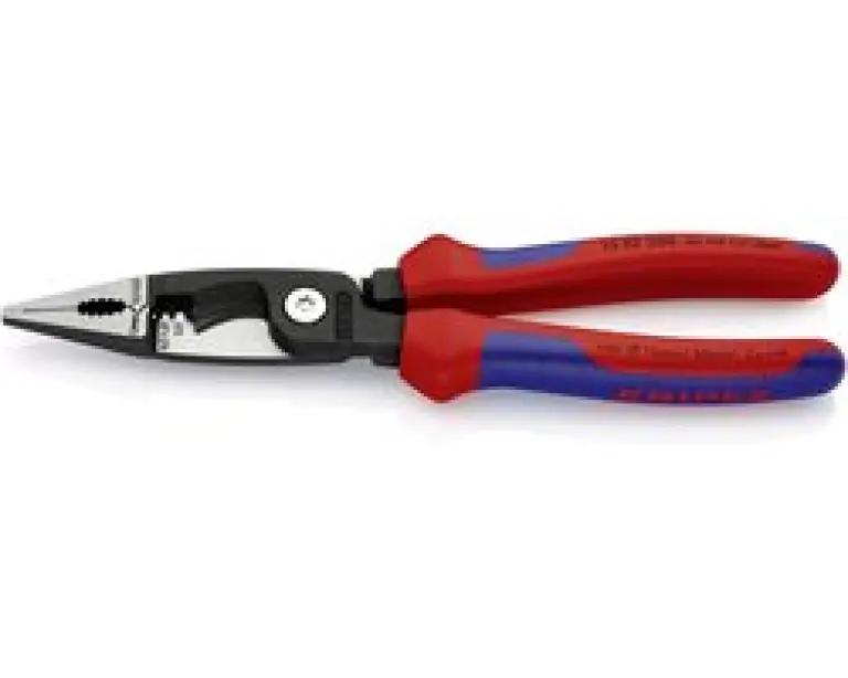 De Knipex 13 82 200 rondbektang is een veelzijdig gereedschap speciaal ontworpen voor elektrische installaties. Met maar liefst 6 functies in één tang kun je gemakkelijk verschillende taken uitvoeren zoals het grijpen van vlakke en ronde materialen, buigen, ontbramen, kabelsnijden, afstrippen en het krimpen van adereindhulzen.