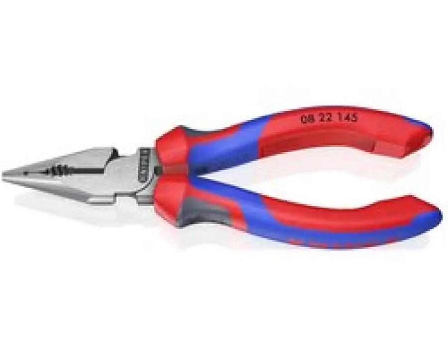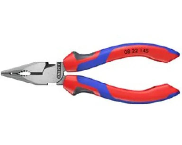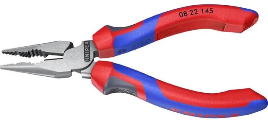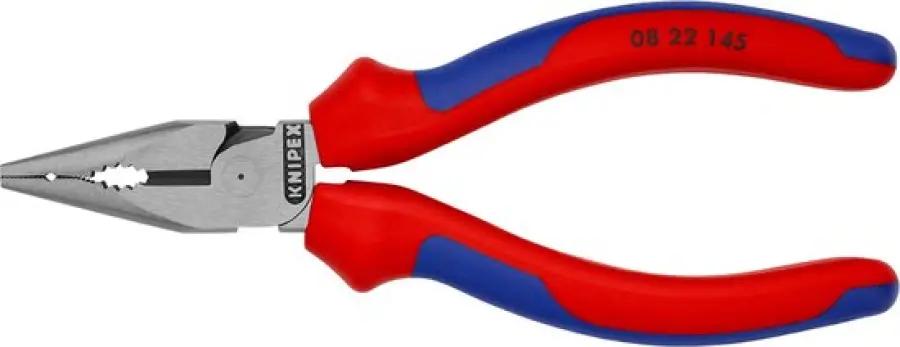 De KNIPEX 08 22 145 combinatietang is een mini krachtpatser van 145mm met spitse bekken, speciaal ontworpen voor uiteenlopende installatie- en reparatiewerkzaamheden. Dankzij de slanke kop met spits uitlopende bekken is deze tang makkelijk te hanteren, ook in moeilijk bereikbare plekken. De vorm zorgt bovendien voor een veilige grip zonder verdraaien.