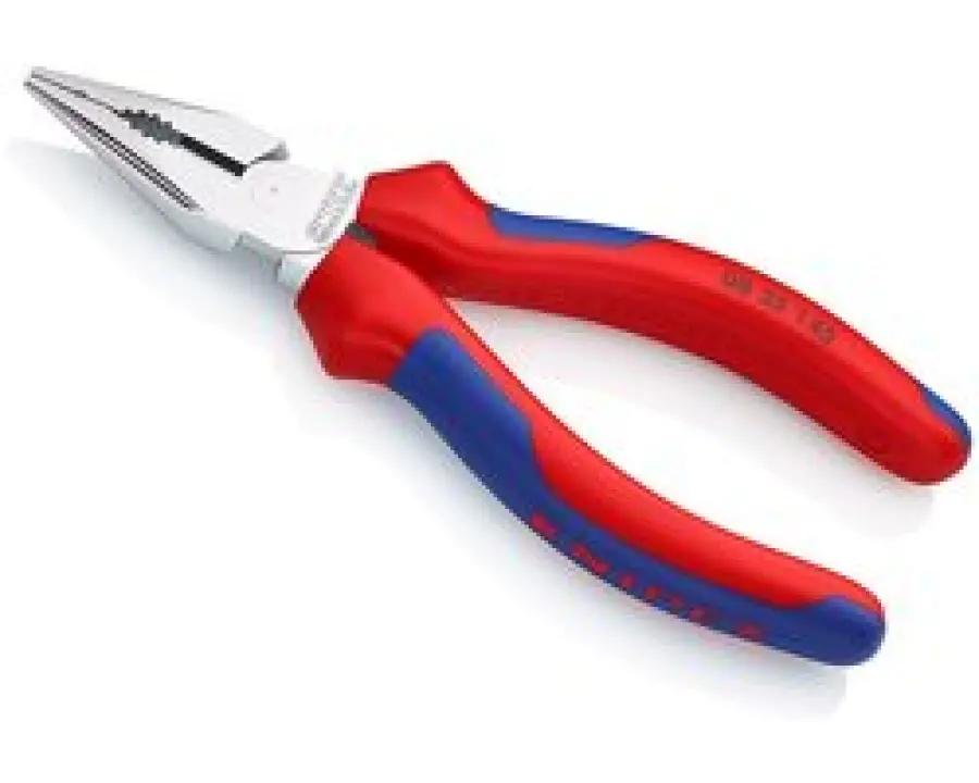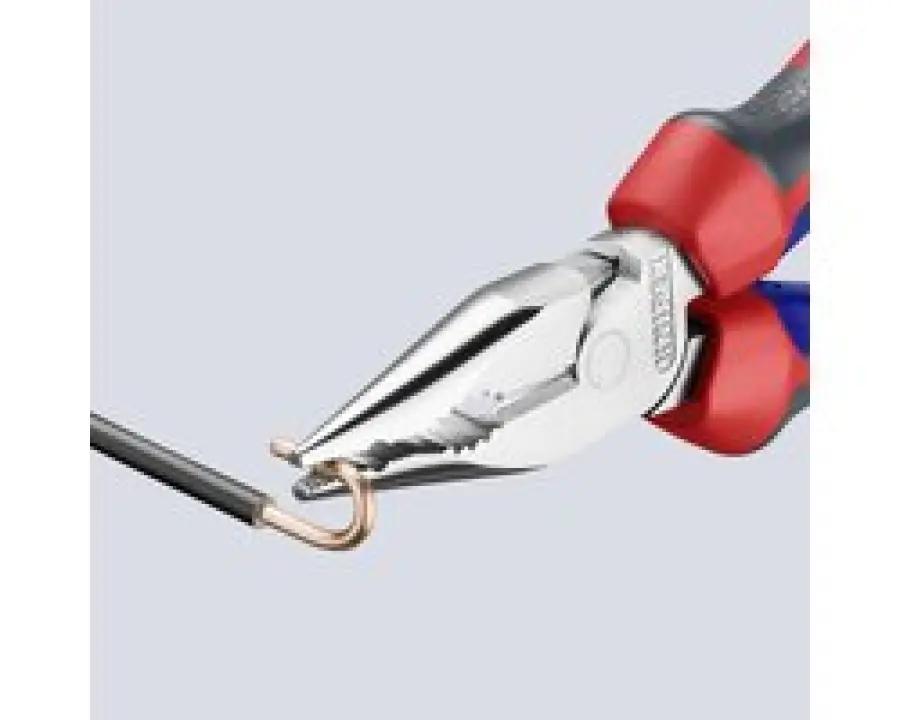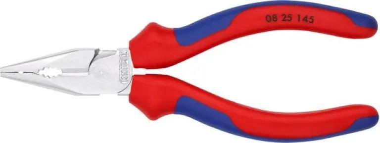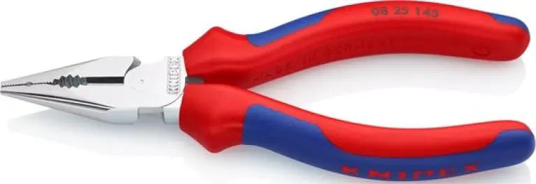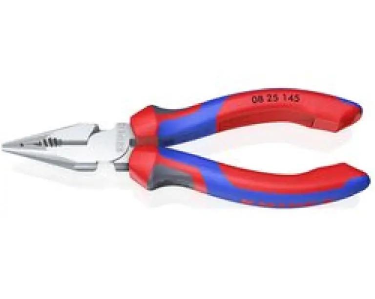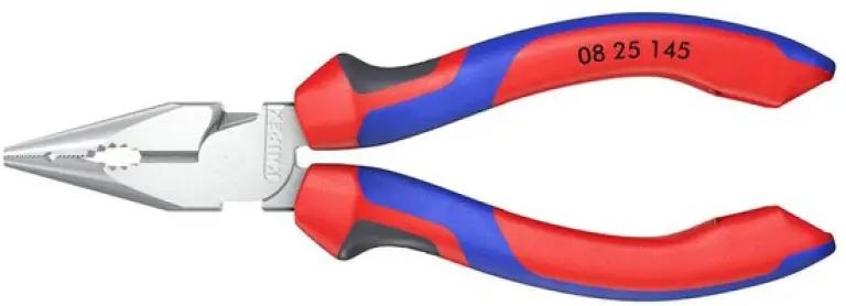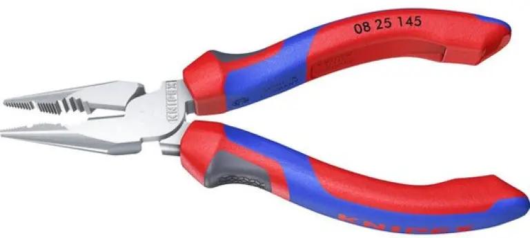 De KNIPEX 08 25 145 Kombitang is speciaal ontworpen voor gebruik in krappe en lastig toegankelijke zones. Dankzij de slanke vorm van de kop met spits uitlopende bekken kun je veilig en nauwkeurig werken, zonder dat de tang verdraait. De grijpvlakken zijn aan één zijde gebold, wat zorgt voor een extra stevige grip op vlakke delen.