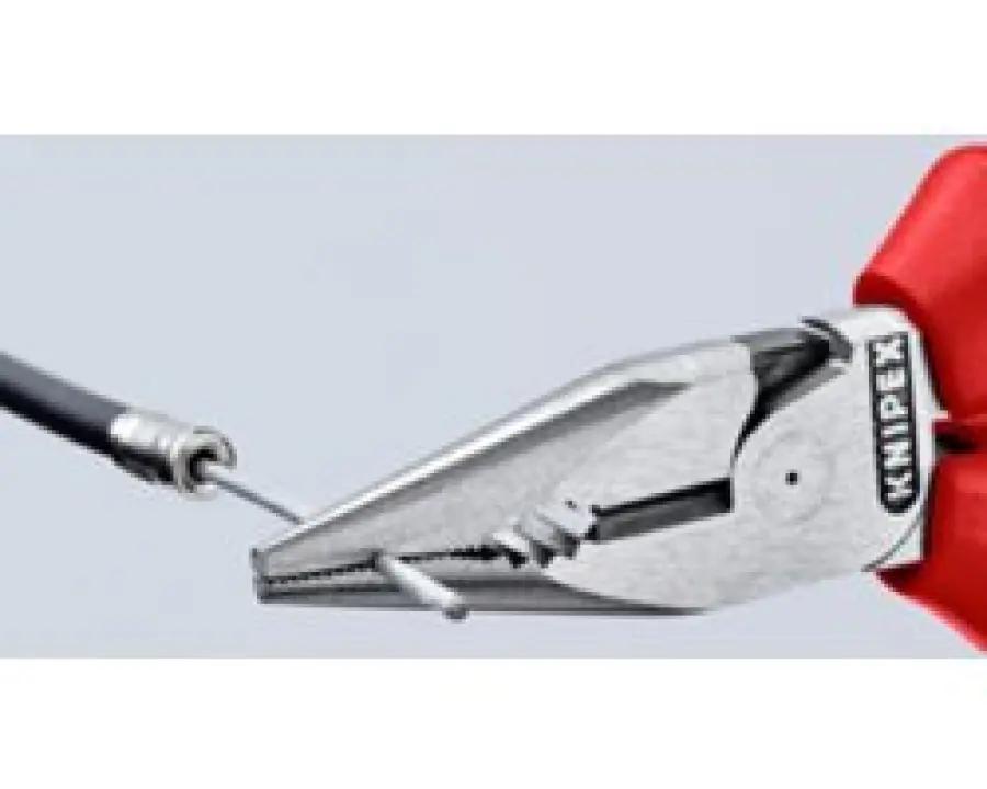Deze kombitang heeft een gefreesde groef in de grijpzone, waardoor kleine werkstukken zoals spijkers, pennen en bouten stevig vastgehouden en gemakkelijk getrokken kunnen worden. Het krachtige scharnier met grote overbrenging maakt het snijden eenvoudig, zelfs bij zachte, middelharde en harde draad. Zo kun je met één tang verschillende materialen aan, van zachte draden tot koperkabels.