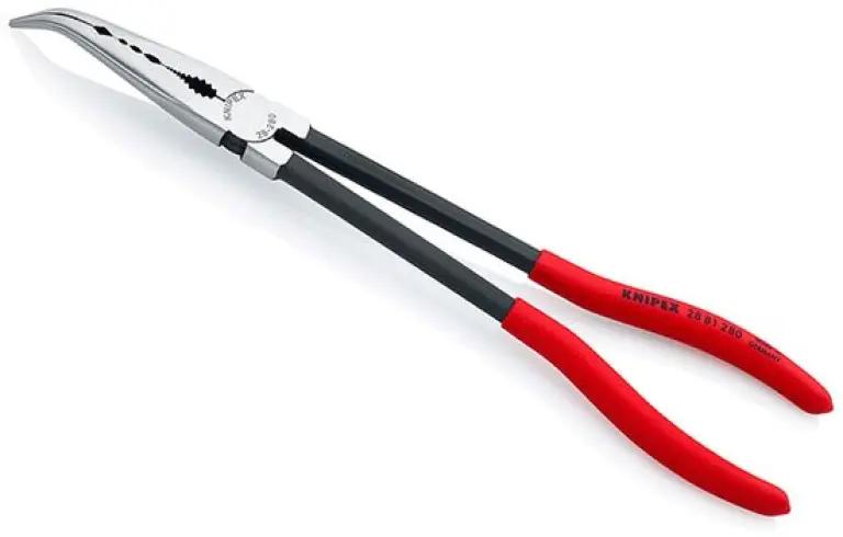 De KNIPEX 28 81 280 montagetang is speciaal ontworpen voor grijp-, justeer- en montagewerkzaamheden op moeilijk toegankelijke plaatsen. Dankzij de slanke en zeer lange uitvoering van 280 mm bereik je ook diep liggende werkstukken eenvoudig met de vlakke ronde grijptoppen.
