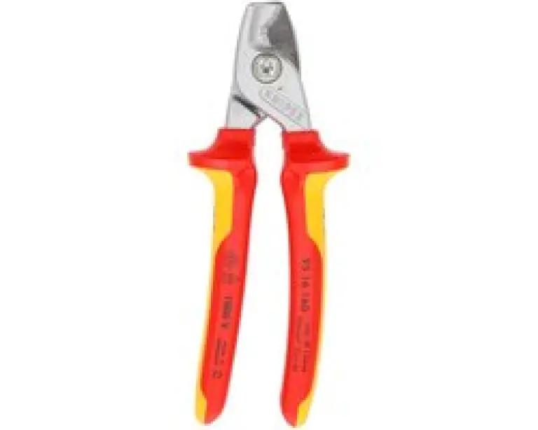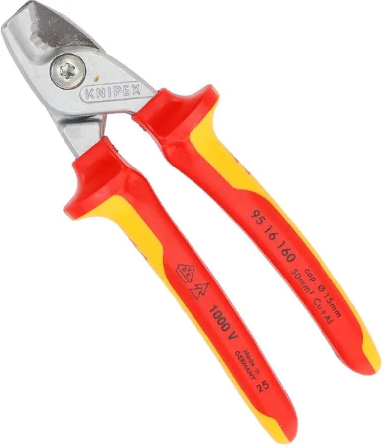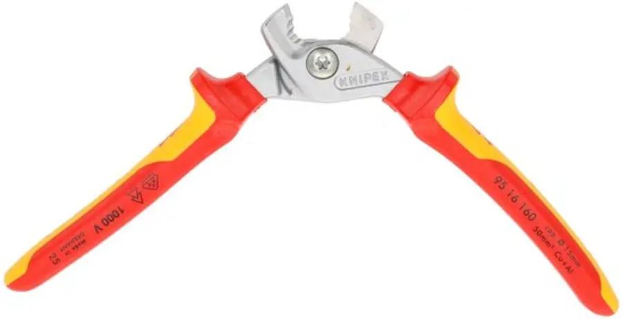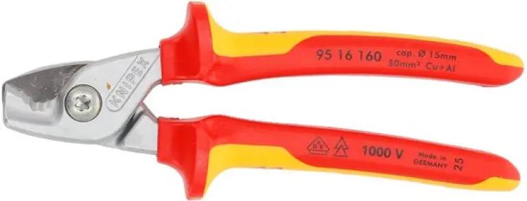 De KNIPEX 95 16 160 stroomkabelschaar is klein, licht en sterk. Met een lengte van slechts 160 mm knip je moeiteloos zonder te knellen. Dankzij de getrapte snede wordt de krachtsinspanning met wel 40% verminderd ten opzichte van standaard kabelscharen. Dit maakt het knippen van kabels een stuk aangenamer, zelfs bij dikkere kabeldiameters.