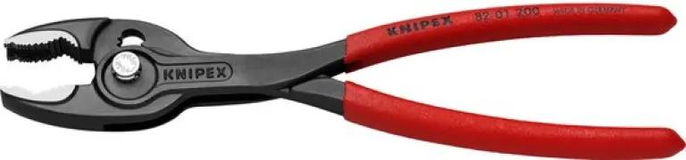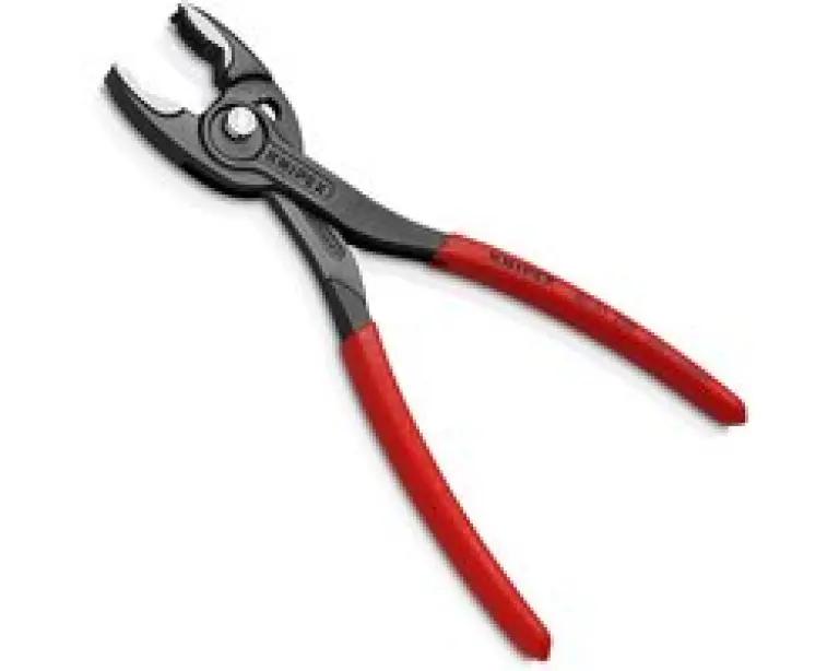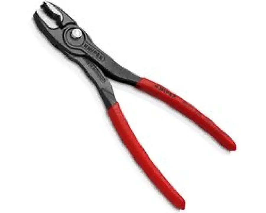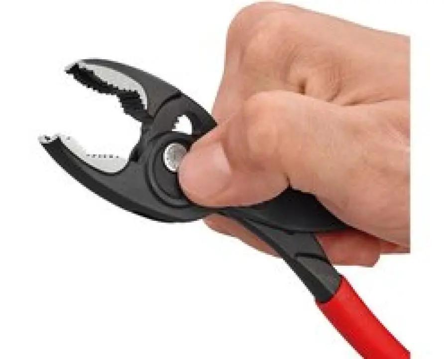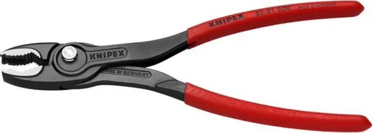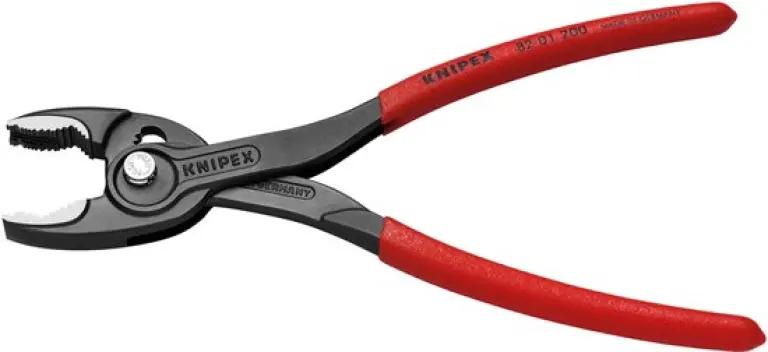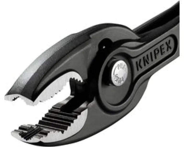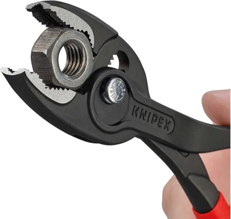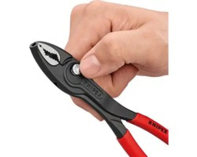 De Knipex TwinGrip combinatietang biedt een slimme combinatie van voor- en zijwaartse grijpfuncties. Dit maakt het mogelijk om moeiteloos verschillende vormen en maten vast te pakken. Dankzij het doorgestoken scharnier en de drukknopverstelling kun je de tang makkelijk en snel aanpassen aan de gewenste grijpafstand, wat zorgt voor een precieze en betrouwbare greep.
