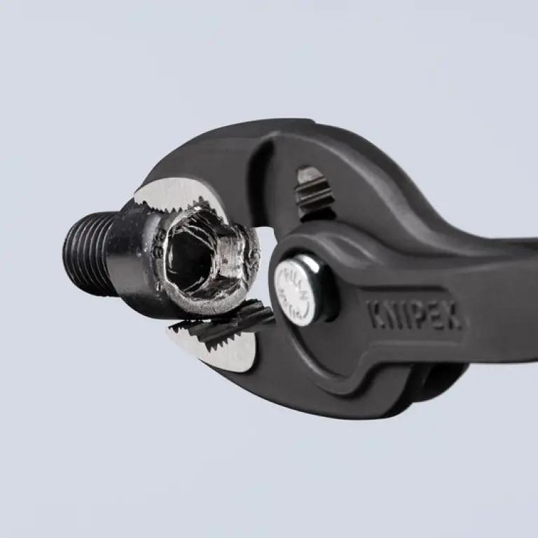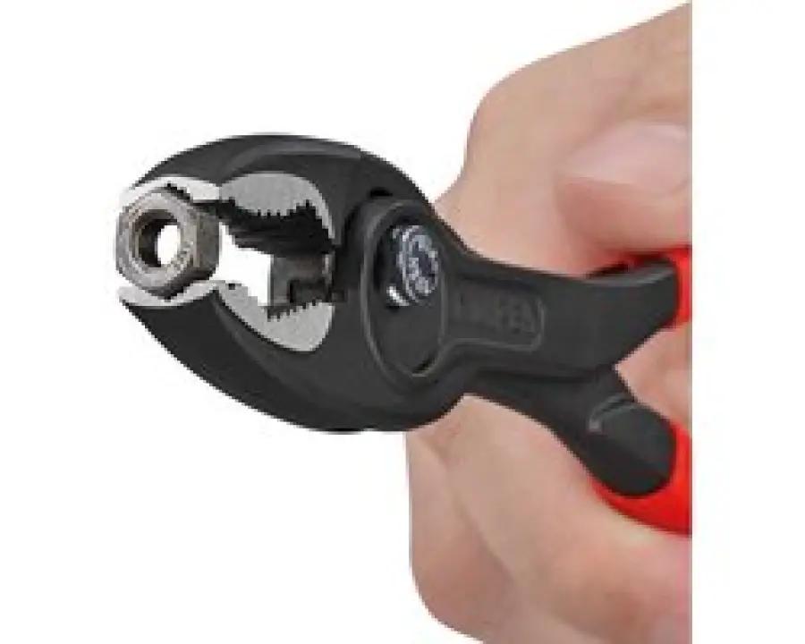 De Knipex TwinGrip heeft een grote capaciteit voor het vastpakken van buizen en moeren met een diameter of sleutelbreedte van 4 tot 22 mm. De driepunts-installatie zorgt voor een betrouwbare grip op platte werkstukken. Bovendien is de tang voorzien van klembescherming, waardoor het risico op afgeknipte vingers wordt verminderd. De stevige constructie met een doorgestoken tangscharnier garandeert duurzaamheid en belastbaarheid.