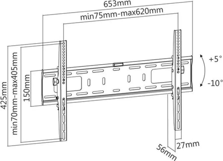 Deze muurbeugel is eenvoudig te installeren en wordt geleverd met montagemateriaal en een duidelijke gebruiksaanwijzing in het Engels. De beugel is kantelbaar, waardoor je het scherm tot 5° naar boven en 10° naar beneden kunt kantelen. Dit helpt schitteringen van ramen of spiegels te verminderen en maakt het mogelijk om de tv vanuit meerdere hoeken optimaal te bekijken. Bovendien kun je het scherm horizontaal verschuiven op de wandplaat, zodat je het precies op de gewenste plek kunt plaatsen.