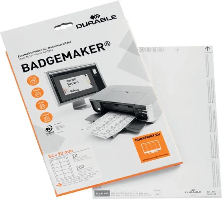 Deze Durable BADGEMAKER insteekkaarten van 40 x 75 mm zijn ideaal voor het maken van professionele naambadges. De kaarten zijn op A4-formaat, waardoor ze gemakkelijk in standaard printers passen. Dankzij het formaat kun je meerdere kaartjes per vel afdrukken, wat tijd en papier bespaart.
