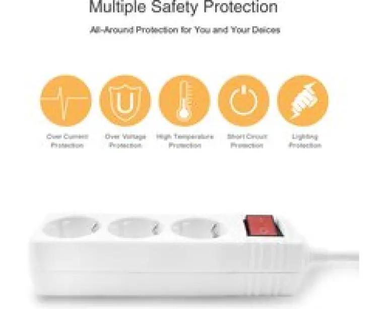 Met een kabel van 5 meter heb je genoeg bewegingsruimte om apparaten aan te sluiten, zelfs als het stopcontact wat verder weg zit. Dit maakt het gebruik van de stekkerdoos extra praktisch en gemakkelijk.