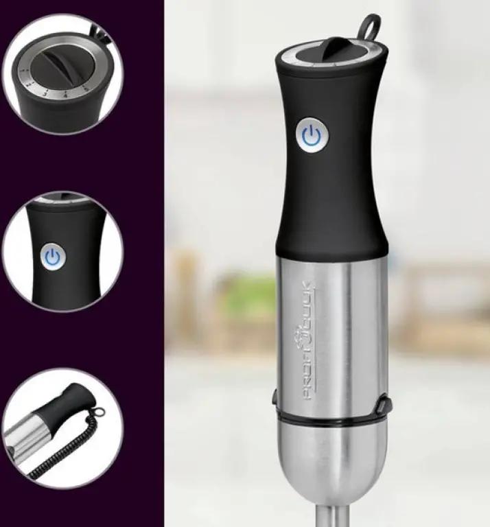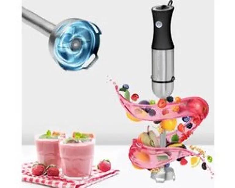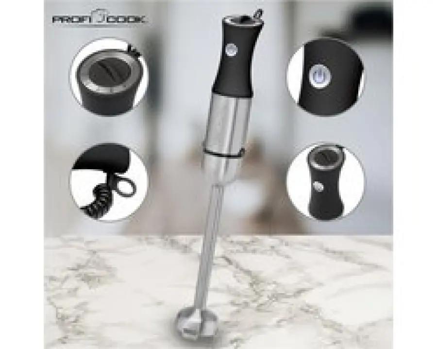 De Profi Cook PC-SM 1094 is een krachtige staafmixer die je helpt bij het maken van soep, pesto, smoothies en milkshakes. Dankzij het 4-voudige roestvrijstalen mes mix je, maal je en pureer je moeiteloos en snel. De extra lange staaf van circa 27 cm is perfect geschikt voor hoge en smalle pannen of kannen, zodat je overal gemakkelijk bij kunt zonder te morsen.