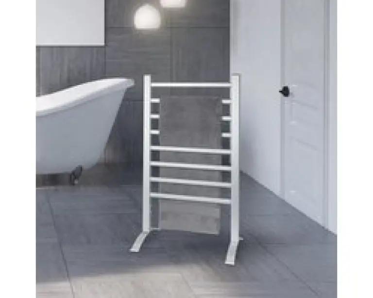 Of je de handdoekradiator nu aan de muur wilt monteren of vrijstaand in de badkamer plaatst, met de meegeleverde montagematerialen en voeten kan het allebei. Dankzij de 1,5 meter lange kabel bepaal je zelf waar je 'm neerzet. De robuuste en duurzame aluminium behuizing geeft een moderne, zilveren uitstraling die in elke badkamer past.
