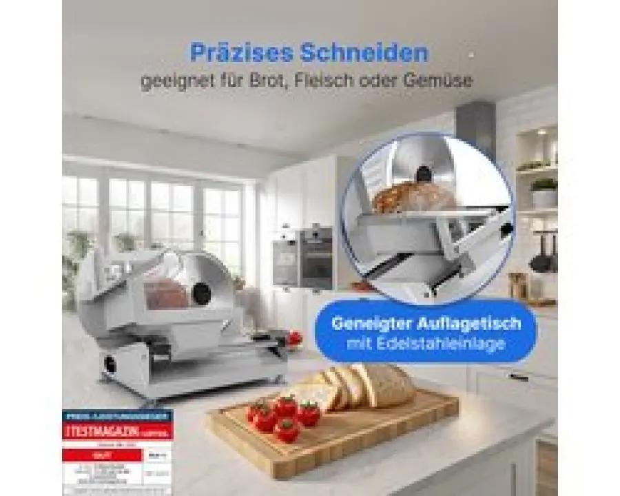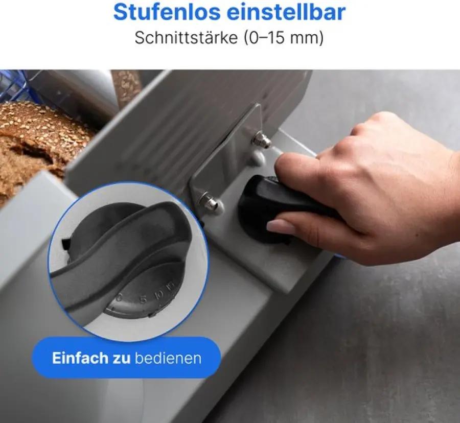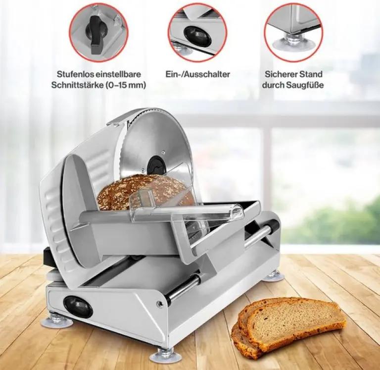 Met een vermogen van 150 watt biedt de Clatronic MA 3585 voldoende kracht om snel en efficiënt te snijden. De machine heeft een antislip bodem voor extra stabiliteit tijdens gebruik en een snoerlengte van 1,20 meter voor voldoende bewegingsvrijheid. De bediening gaat eenvoudig via knoppen en het apparaat is BPA-vrij, wat zorgt voor een veilige omgang met voedsel. De snijmachine is geschikt voor zowel professioneel als thuisgebruik en wordt geleverd inclusief gebruiksaanwijzing in het Nederlands.