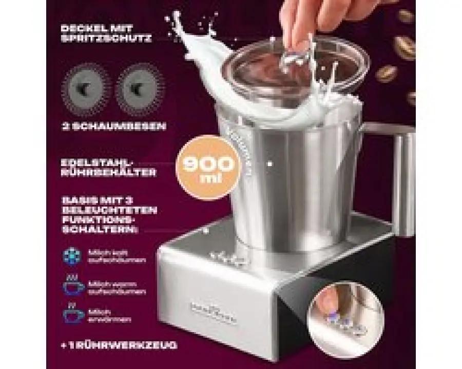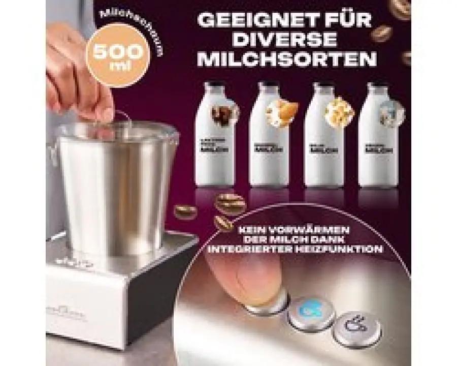 Met de Profi Cook PC-MS 1032 melkopschuimer maak je binnen enkele minuten heerlijk melkschuim, zonder dat je de melk eerst hoeft voor te verwarmen. Dankzij de geïntegreerde verwarmingsfunctie en het verborgen verwarmingselement wordt de melk snel en efficiënt op temperatuur gebracht.