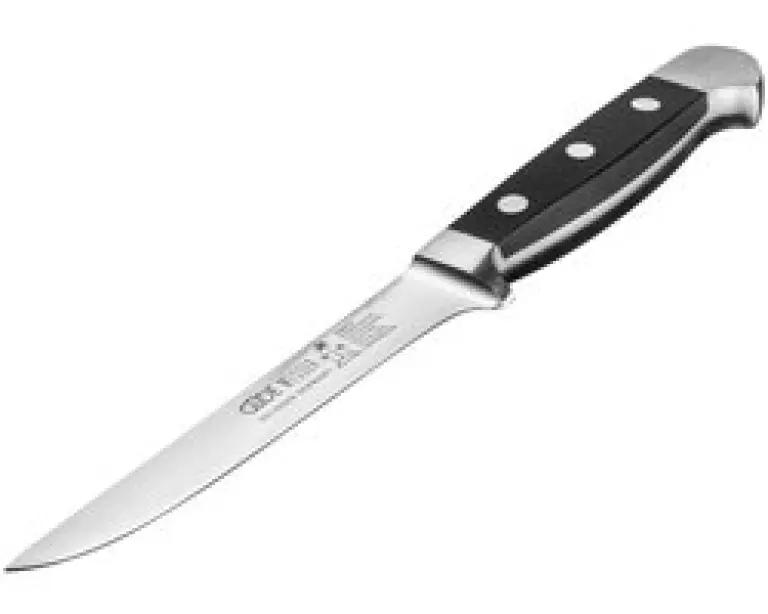 Het uitbeenmes van Güde is een onmisbaar keukenhulpmiddel wanneer je vlees van het bot wilt verwijderen. Dankzij het spitse, smalle lemmet werk je nauwkeurig en makkelijk. Dit mes is ideaal om vlees in één stuk te houden door huid en pezen zorgvuldig te verwijderen, zodat je het beste uit je kwaliteitsvlees haalt.