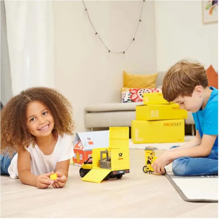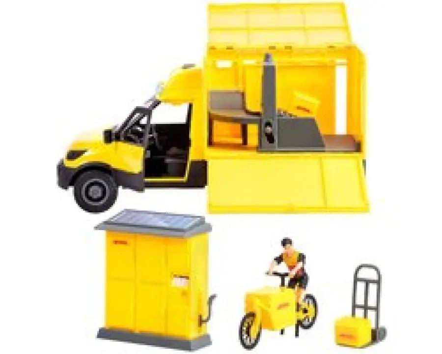 De Dickie DHL Delivery Set 203747020 is een vrolijke en complete speelgoedset die bestaat uit een vrijloop vrachtwagen, een pakstation, een pakketrijwiel, een figuur en verschillende accessoires. Dit kant-en-klare model brengt het plezier van pakketbezorging tot leven en nodigt kinderen uit om actief mee te spelen en hun eigen leveringen te organiseren.