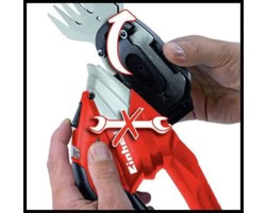 Met de Einhell GE-CG 12 Li WT accu grasschaar wissel je zonder gereedschap snel tussen gras- en struikschaarmessen. De opzetstukken zijn eenvoudig onderling te verwisselen, zodat je altijd het juiste mes bij de hand hebt voor jouw klus.