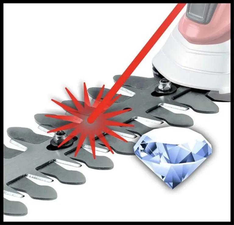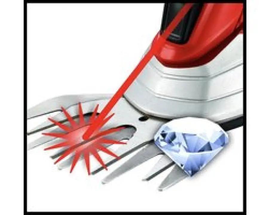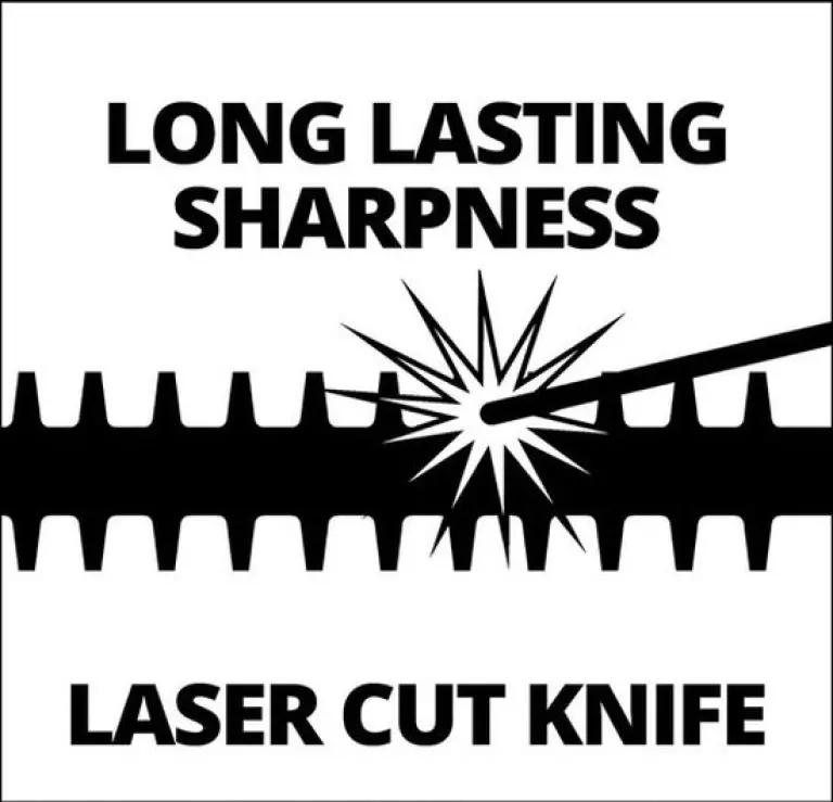 De lasergesneden messen snijden moeiteloos door gras en kleinere takken. Het grasmes heeft een snijbreedte van 100 mm, terwijl het struikschaarmes 190 mm breed is. Zo ben je verzekerd van een strakke en precieze afwerking in je tuin.