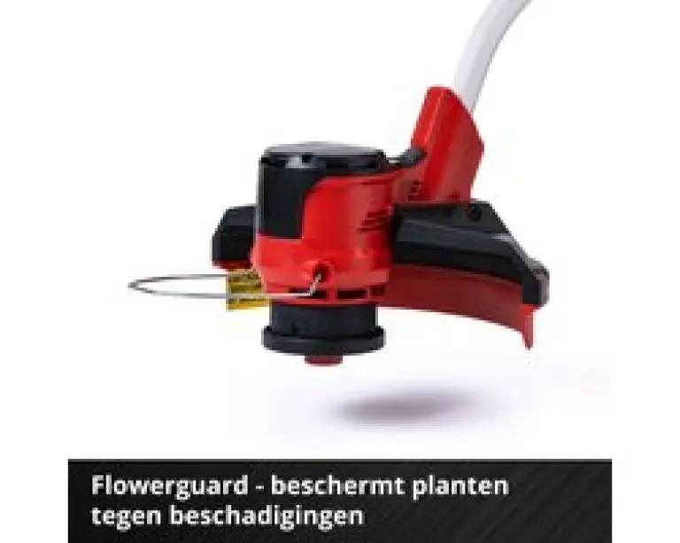 De automatische draadspoel met tipfunctie zorgt dat de trimdraad altijd op de juiste lengte blijft, zonder gedoe. De maaibreedte van 30 cm maakt dit model ideaal voor zowel kleine als middelgrote oppervlakken. De meegeleverde draagriem verdeelt het gewicht en verhoogt het werkcomfort. Met de "Flowerguard" bescherm je bloemen en planten tegen schade tijdens het trimmen. Dankzij de geïntegreerde wandhouder berg je de grastrimmer veilig en netjes op.