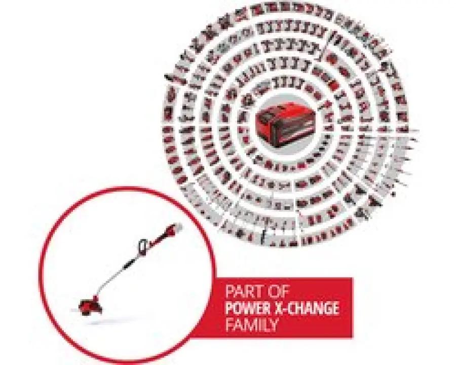 De grastrimmer maakt deel uit van het slimme Einhell Power X-Change platform. Hiermee kun je één accu gebruiken voor meer dan 300 verschillende apparaten binnen deze lijn. Dit betekent minder accu's en laders nodig, en meer gemak en vrijheid tijdens het klussen in en om het huis.