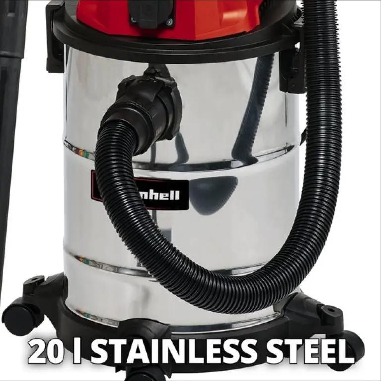 De Einhell TC-VC 1820 SA is jouw nieuwe schoonmaakhulp voor in huis, de garage, kelder of auto. Met een krachtige motor van 1250 watt en een zuigkracht van 180 mbar pak je moeiteloos nat en droog vuil aan. Het grote 20-liter RVS-reservoir zorgt ervoor dat je lang door kunt werken zonder te hoeven legen. Of je nu stof, vocht of grof vuil wilt verwijderen, deze zuiger staat altijd paraat.