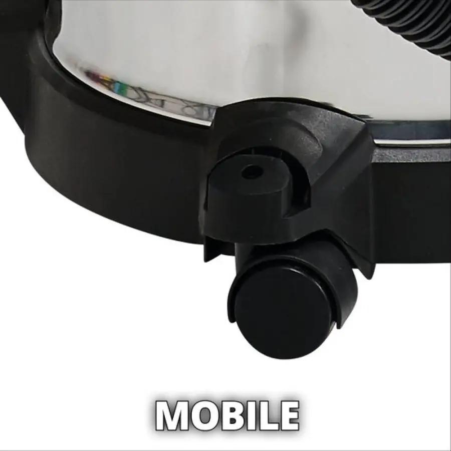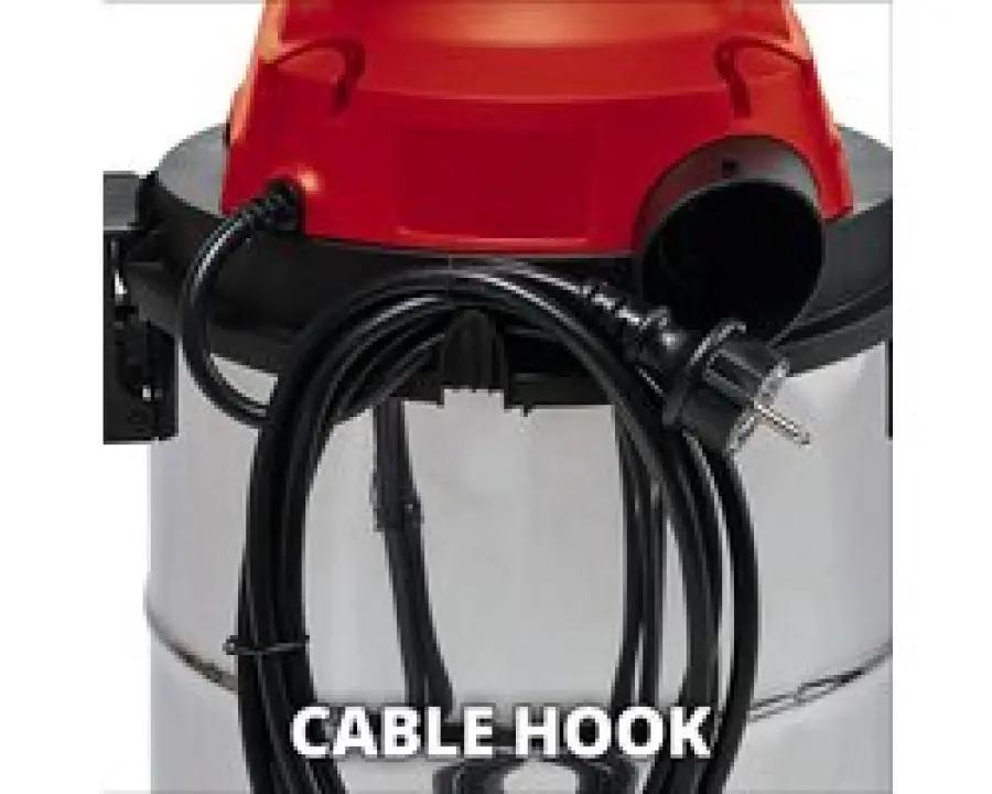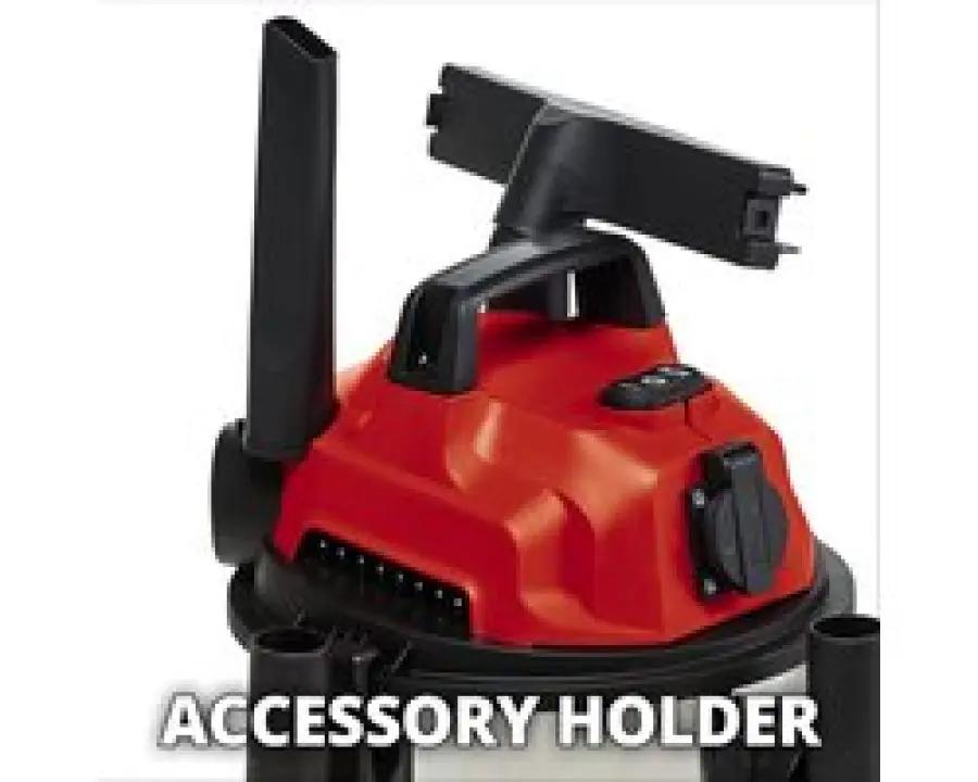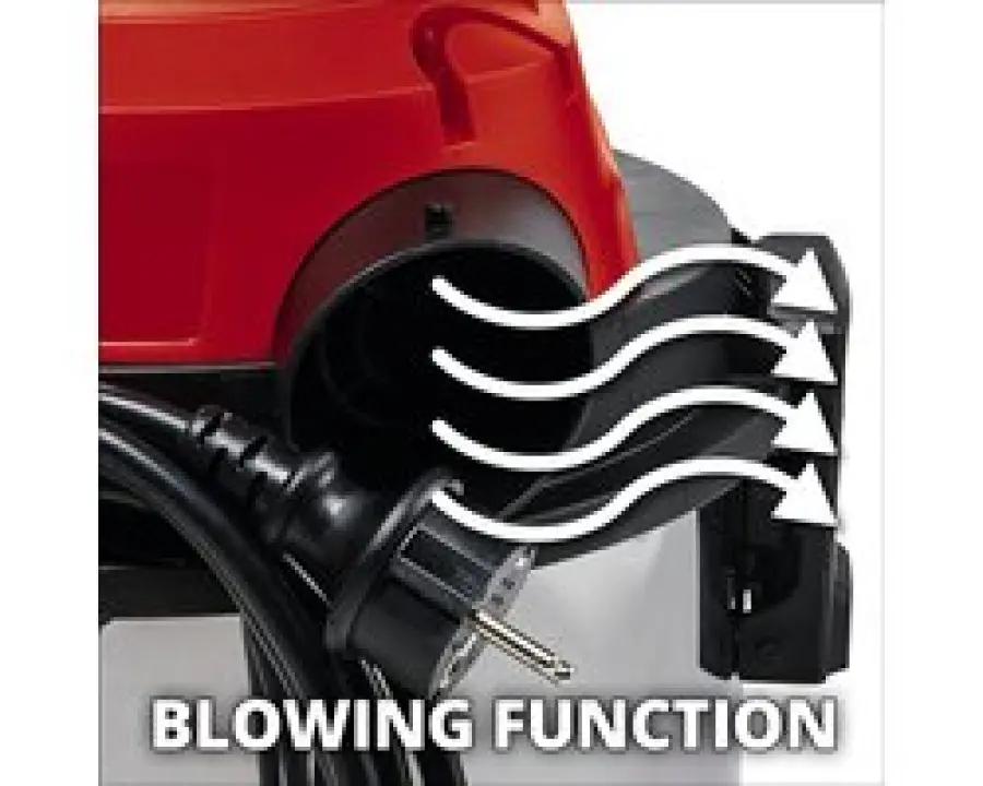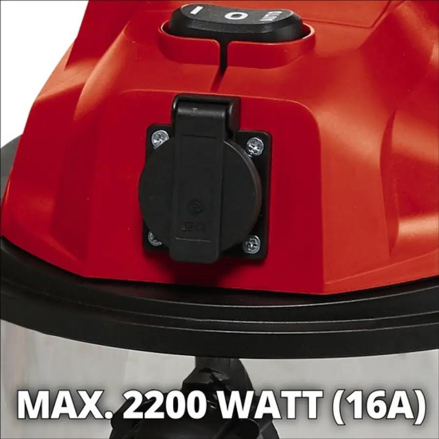 Wat deze nat-/droogzuiger echt slim maakt, is het geïntegreerde stopcontact met automatische start. Sluit je een elektrisch gereedschap aan, dan start de zuiger automatisch mee. Zo houd je je werkplek schoon zonder extra moeite. De blaasfunctie helpt je om moeilijk bereikbare plekken eerst vrij te maken van stof of vuil, waarna je het eenvoudig opzuigt. Met de handige accessoire- en kabelhouders berg je alles netjes op zodat je geen tijd verliest.