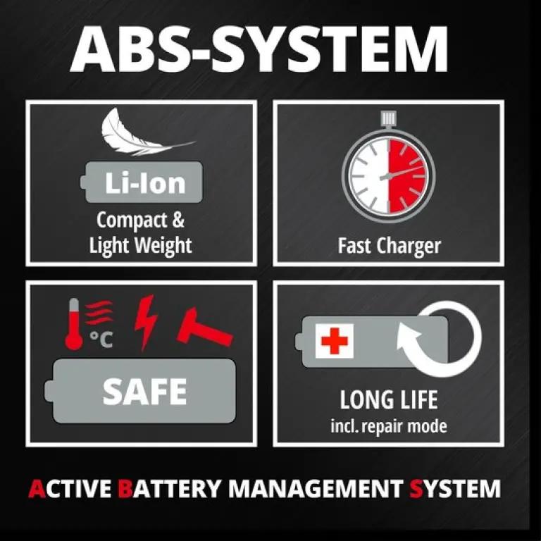 De accu's zijn ook geschikt voor TWIN-Pack gebruik. Hierdoor kan je langer doorwerken en kunnen machines van meer stroom worden voorzien (2x 18 V = 36 V). De lithium-ion cellen bieden meer vermogen en zijn bestand tegen zelfontlading. De levensduur van de accu’s wordt aanzienlijk verlengd door een aan de situatie aangepaste laadcyclus.