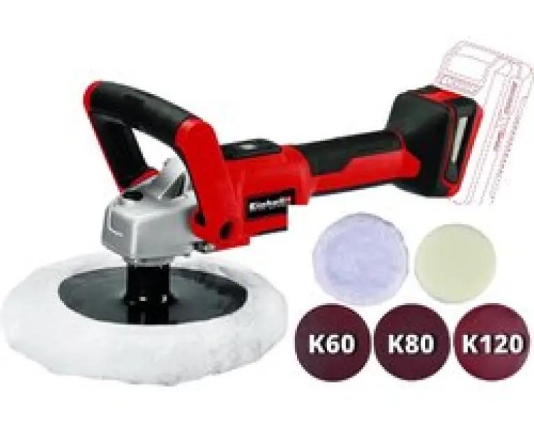 | Verpakkingsinhoud | Accu polijst-/schuurmachine, 1x schuimrubberopzetstuk, 1x Synthetische polijstkap, 3x schuurvellen (K60, K80, K120) |