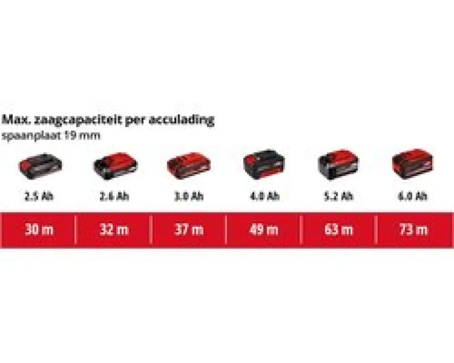 De zaag is uitgerust met een stofzuigeradapter, zodat je werkplek schoon blijft tijdens het zagen. De LED-verlichting verheldert het zaaggebied, waardoor je altijd precies ziet waar je zaagt. Bovendien is de zaag compatibel met alle Einhell geleiderails, wat extra nauwkeurigheid biedt bij het zagen. Let op: accu en lader worden niet meegeleverd, maar zijn apart verkrijgbaar.