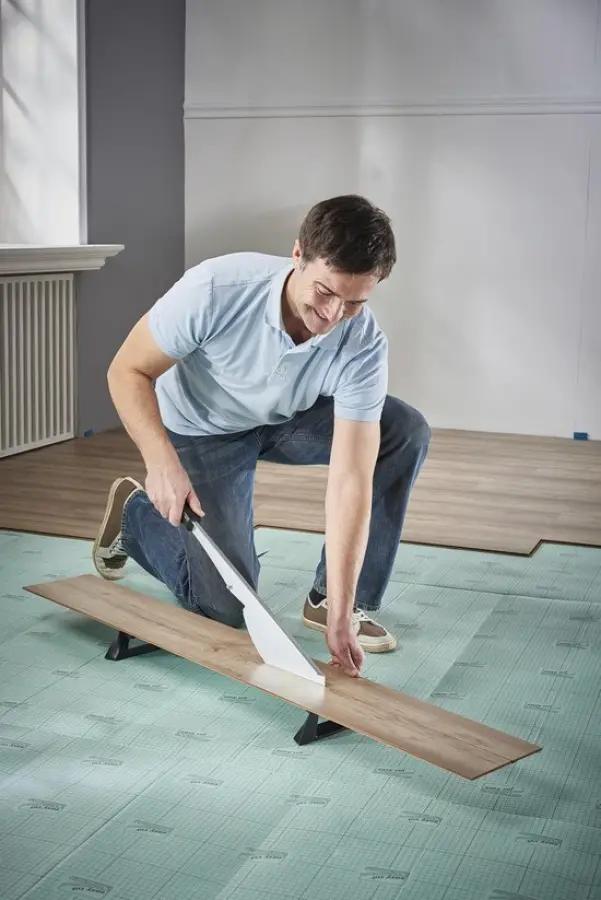 In tegenstelling tot traditionele snijbladen is het mes van deze laminaatsnijder bewust niet scherp, waardoor het veilig te gebruiken is zonder gevaarlijk mesblad. De grote aanslag maakt het mogelijk om nauwkeurige hoeksneden te maken van 90° of 45°, en met de verwijderbare aanslag zijn ook vrije hoek- en langssneden mogelijk. De ergonomische handgreep zorgt voor comfortabel gebruik, terwijl antislipvoetjes onder de stabiele steunvoeten zorgen voor een stevige grip tijdens het snijden.