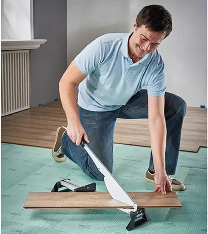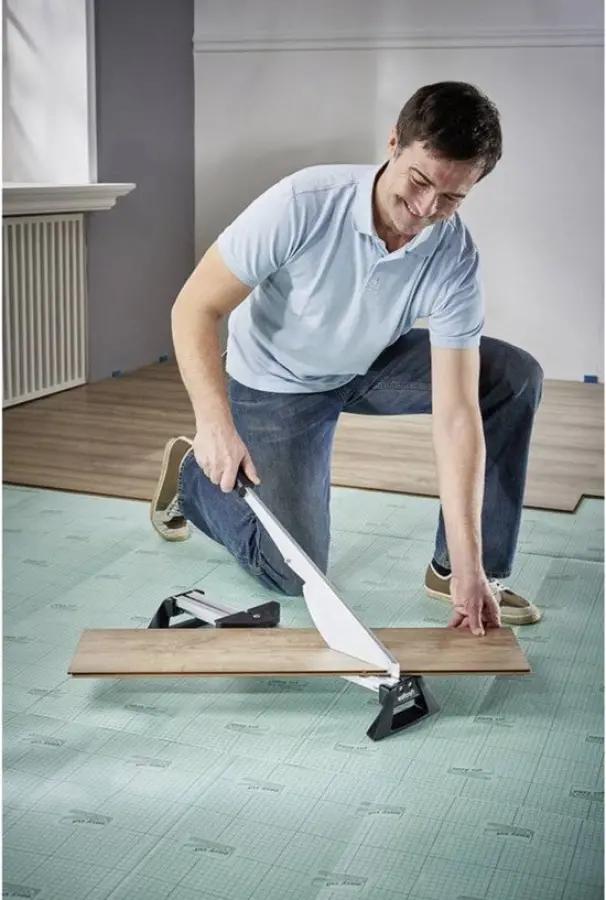 Door de torsiestijve constructie van hoogwaardige aluminium profielen weegt de laminaatsnijder slechts 2 kg. Dit maakt hem gemakkelijk te vervoeren en een ideaal alternatief voor kap- of decoupeerzagen bij legwerkzaamheden. Het apparaat is perfect voor zowel professionele vakmensen als doe-het-zelvers die op zoek zijn naar een veilige, efficiënte en comfortabele manier om laminaat te snijden.