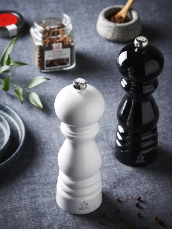 De Peugeot Paris zoutmolen is een tijdloos model dat bekend staat om zijn stijlvolle zwarte gelakte beukenhouten afwerking. Met een hoogte van 22 cm ligt deze molen prettig in de hand en is hij een echte eyecatcher in je keuken of op tafel.