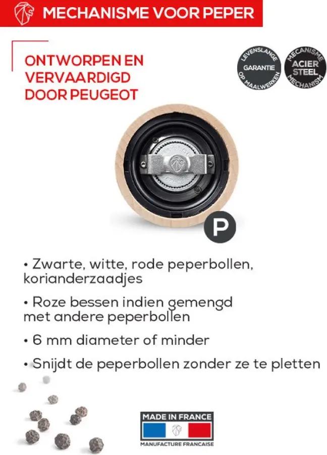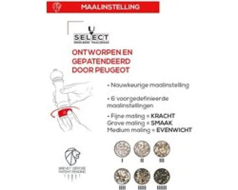 Met het unieke u'Select-systeem van Peugeot stel je eenvoudig de maalgraad in door aan de ring aan de voet van de molen te draaien. Zo kies je altijd de perfecte grofheid van de peperkorrels, afgestemd op jouw gerecht en smaakvoorkeur. Het maalwerk is gemaakt van gehard staal, wat zorgt voor een duurzame en precieze maling. Bovendien krijg je levenslange garantie op het functioneren van het maalwerk, waardoor je verzekerd bent van kwaliteit en langdurig gebruik.