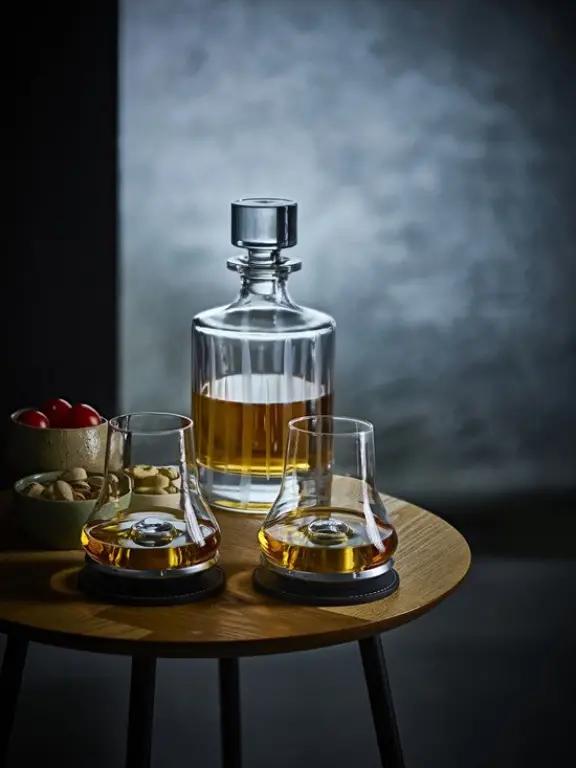 Ervaar de ultieme smaakbeleving met de Peugeot Les Impitoyables N°5 Set Whisky. Deze set bestaat uit het mondgeblazen Les Impitoyables N°5 glas, speciaal ontworpen om de optimale smaken van whisky en sterke dranken vrij te laten komen. Het unieke tulpvormige design van het glas zorgt ervoor dat de beste aroma's in het midden van het glas vrijkomen en niet ontsnappen, waardoor de drank zijn perfecte smaak behoudt. De bijpassende voet van de set kan in de vriezer geplaatst worden, waardoor de temperatuur van de whisky kan dalen tot 5 à 8 graden Celsius. Hiermee wordt een andere smaakervaring gecreëerd, ideaal voor de echte liefhebber van whisky en sterke dranken.