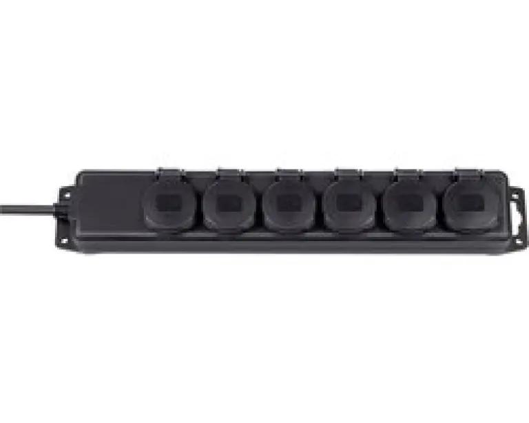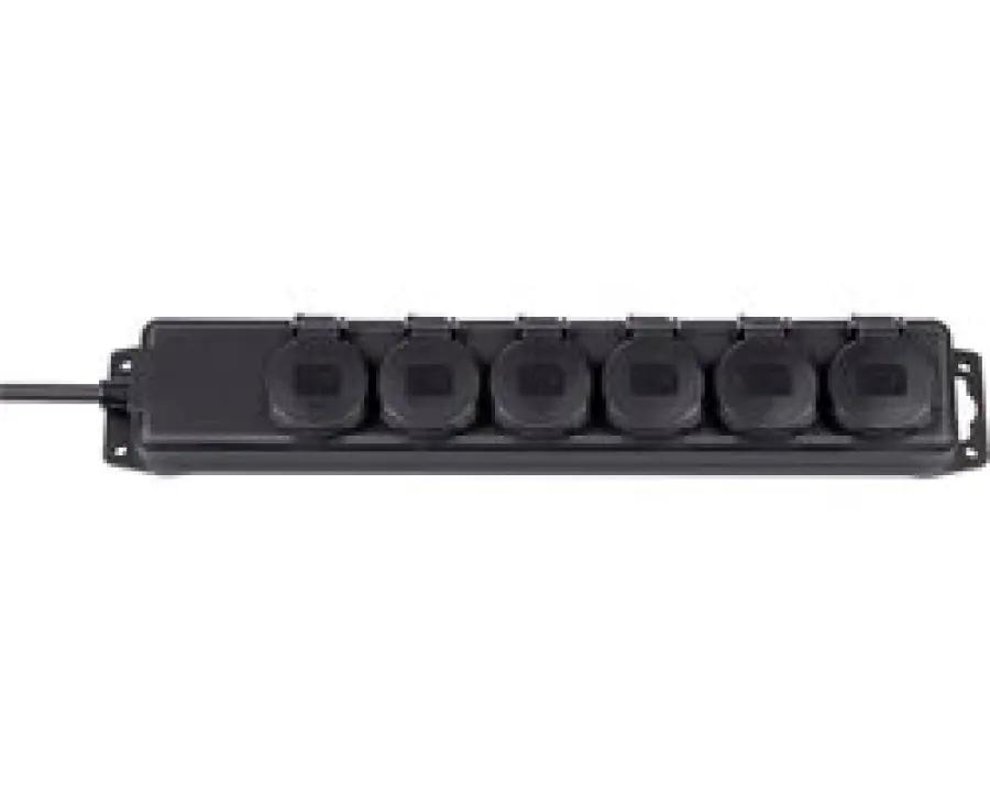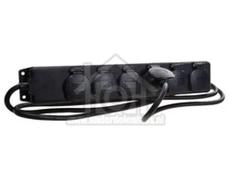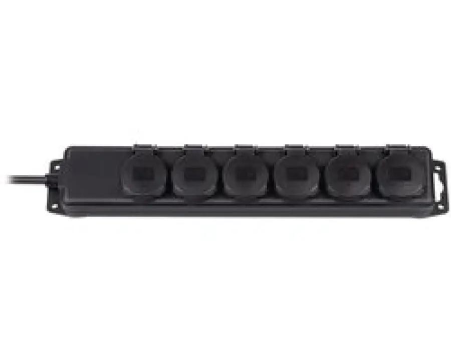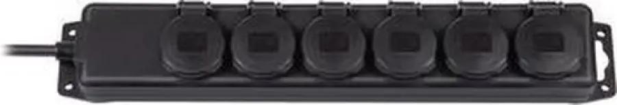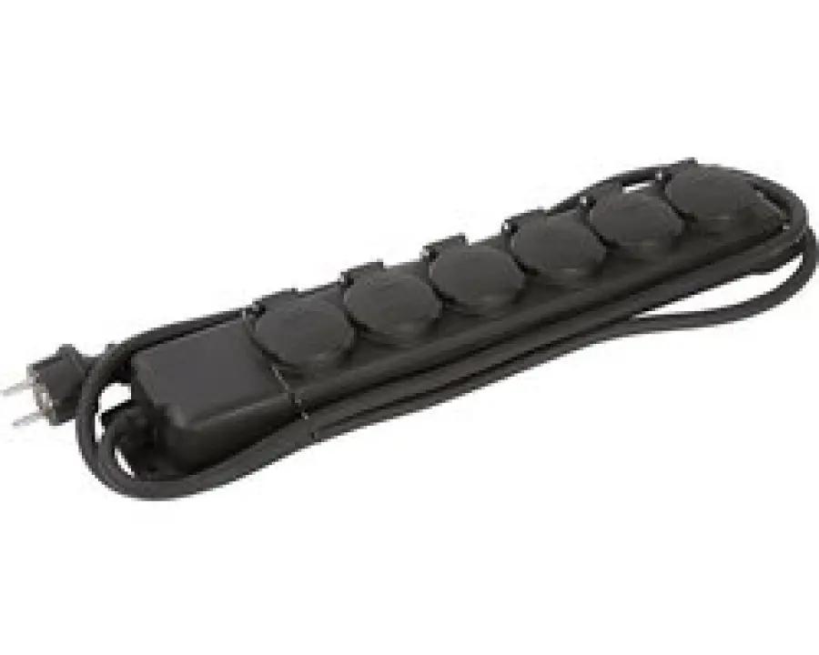 Deze stopcontactverdeler beschikt over zes stopcontacten die elk voorzien zijn van zelfsluitende deksels, waardoor vuil en water buiten blijven. De aansluitkabel is 2 meter lang en gemaakt van duurzaam neopreen, wat zorgt voor flexibiliteit en stevigheid. De kabel is bovendien in een handige 45° hoek geplaatst, wat het gebruik vergemakkelijkt. Bevestigen is eenvoudig dankzij de schroefgaten, waardoor je het stopcontact stabiel kunt plaatsen waar je het nodig hebt.
