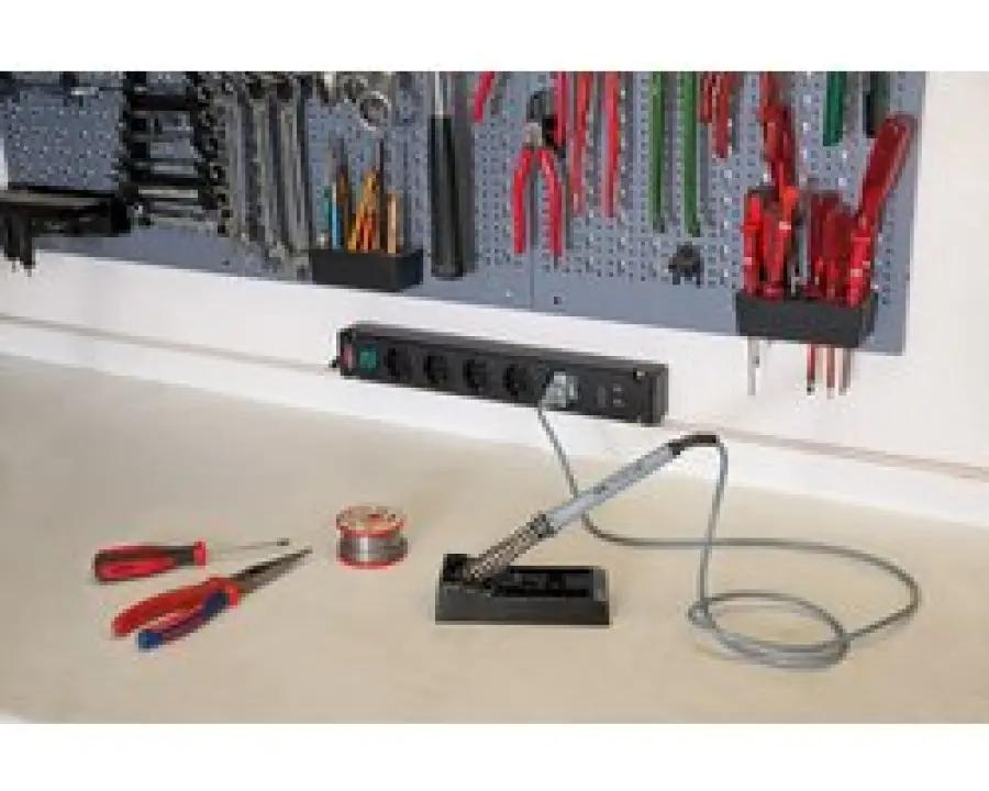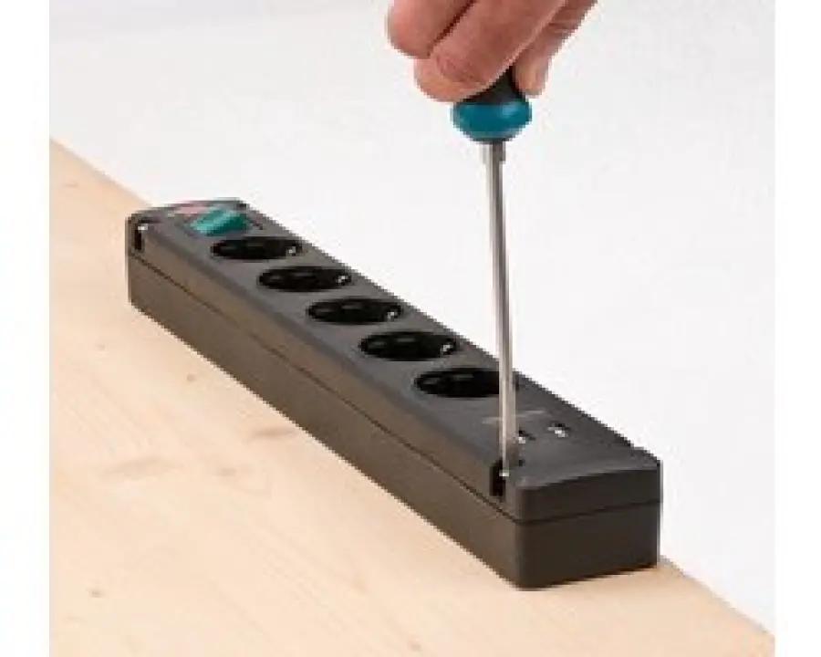 De stopcontacten zijn onder een hoek van 90 graden geplaatst, wat het aansluiten van haakse stekkers eenvoudig maakt en zorgt voor voldoende afstand tussen de aansluitingen. De stekkerdoos heeft een verlichte veiligheidsschakelaar die tweepolig aan en uitgeschakeld kan worden, wat extra veiligheid biedt. Daarnaast is de stekkerdoos voorzien van een hogere contactbescherming en is hij geschikt voor montage aan de wand dankzij de praktische schroefgaten.