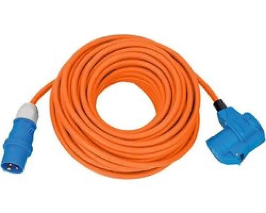 Deze kabel is uitgerust met een CEE 16A 2P+PE stekker en een hoekkoppeling inclusief combinatie stopcontact met hogere contactbescherming. De kabel is spatwaterdicht en voldoet aan de IP44 standaard, wat betekent dat hij beschermd is tegen vreemde voorwerpen en spatwater. Dit maakt de kabel geschikt voor langdurig buitengebruik, zonder zorgen over beschadiging door weersinvloeden.
