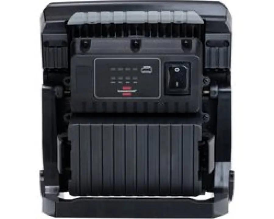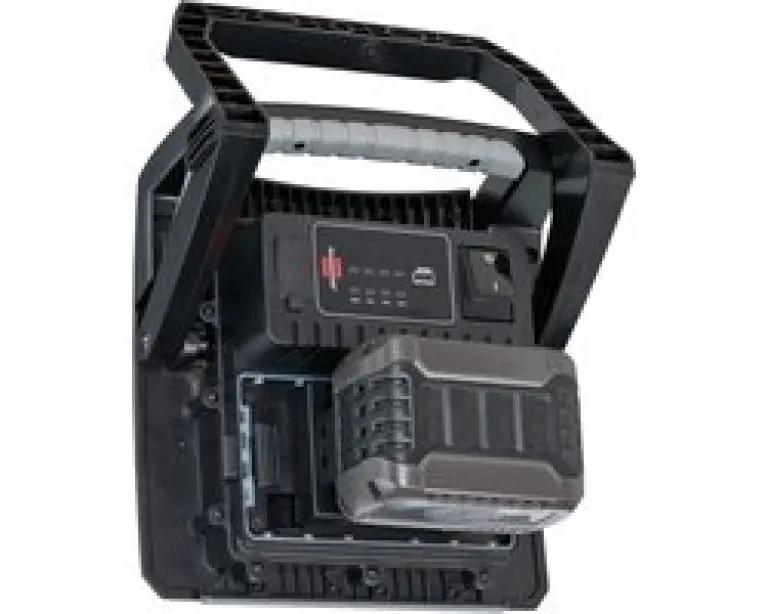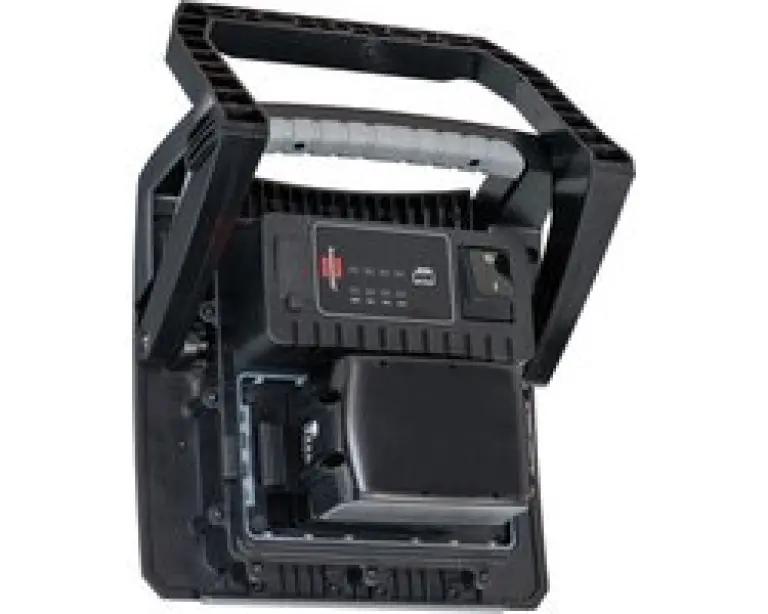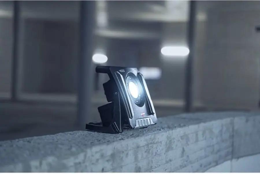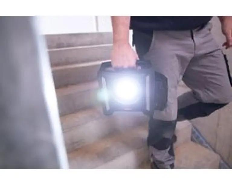 De bouwlamp is voorzien van een batterijstatusindicator, zodat je altijd precies weet hoeveel energie er nog over is. De accu's zijn beschermd tegen diepontlading en oververhitting, wat de levensduur en veiligheid ten goede komt. Met vier schakelniveaus (100%, 75%, 50%, 25%) bepaal je zelf de lichtsterkte en kun je de gebruiksduur van de accu verlengen. De lamp heeft een ergonomische handgreep en een kantelbare kop met een stralingshoek van 110°, zodat je het licht eenvoudig op de juiste plek richt. De LED-spot is uitgerust met een anti-kantelbeveiliging die de lens en behuizing beschermt tegen schade. Daarnaast is er een statiefbevestiging mogelijk, wat het gebruik op diverse werkplekken nog handiger maakt.