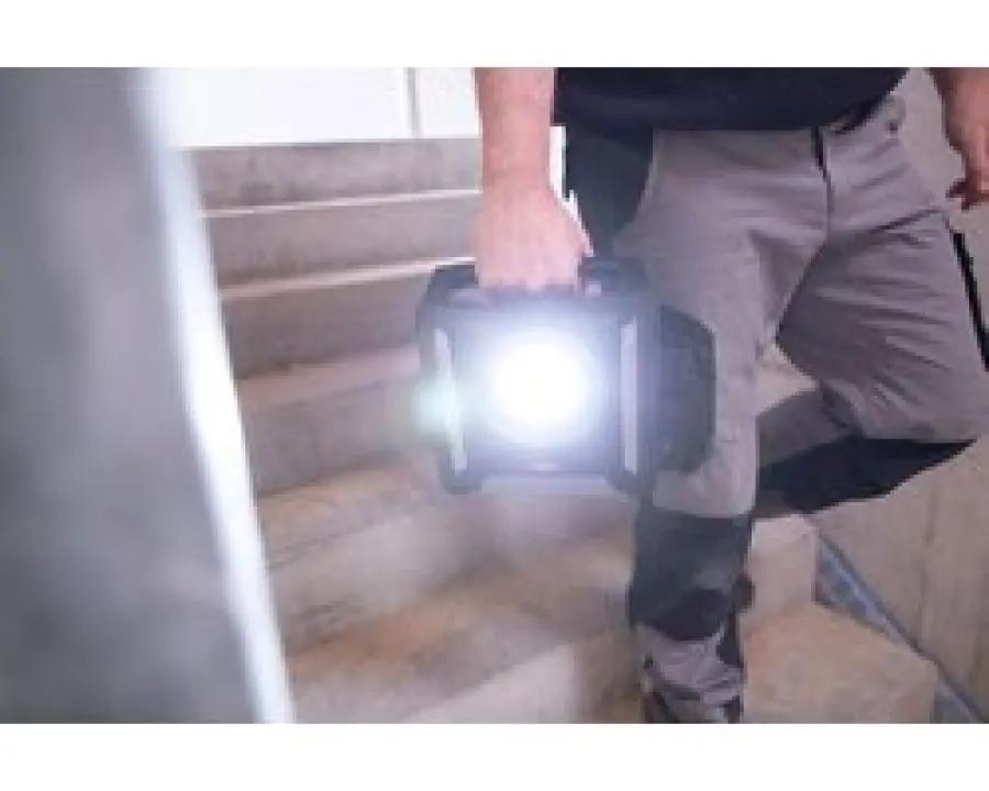 Met een IP65 beschermingsklasse is deze bouwlamp bestand tegen stof en water, waardoor hij ook geschikt is voor gebruik in ruwe en vochtige omgevingen. De slagvaste behuizing (IK08) en het metalen materiaal zorgen voor extra duurzaamheid. De lamp valt onder categorie 2 (K2) apparatuur, wat betekent dat hij geschikt is voor zware mechanische, fysische en chemische belastingen. De kleurtemperatuur van 6500 K levert koel wit licht met een hoge kleurweergaveindex (CRI 84), wat prettig is voor nauwkeurig werk. De lamp werkt volledig op accu, zonder snoer, zodat je maximale bewegingsvrijheid hebt op de werkplek.