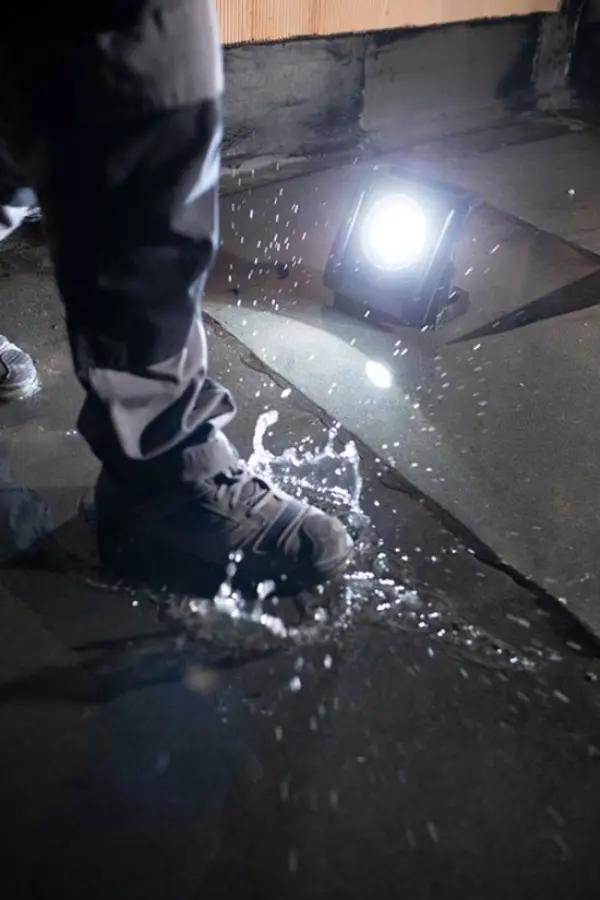 Deze bouwlamp is stevig gebouwd met een slagvastheid van IK08 en een beschermingsklasse IP65, waardoor hij bestand is tegen ruwe omstandigheden en water. De LED-spot is uitgerust met een anti-kantelbeveiliging die zowel de lens als de behuizing beschermt. De ergonomische handgreep en de mogelijkheid tot statiefbevestiging maken het gebruik comfortabel en veelzijdig.