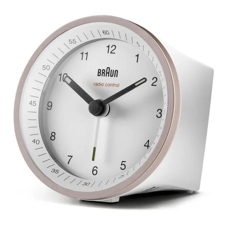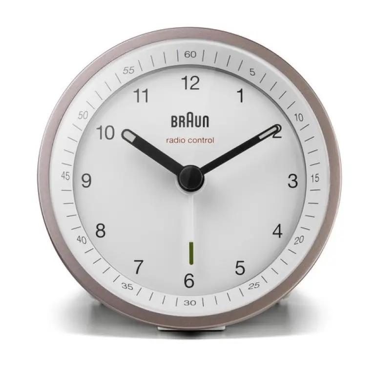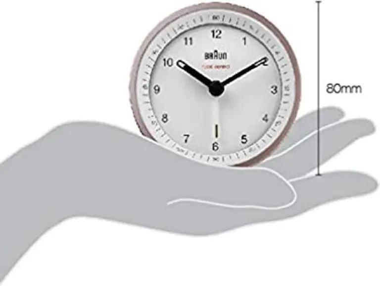 De Braun BC07 quartzwekker combineert een klassiek design met handige functies. Deze wekker heeft een ronde vorm en een compact formaat van 8 cm diameter, perfect om op je nachtkastje of bureau te plaatsen. Met zijn roze kleur en zilveren horlogekast valt hij direct op en geeft je kamer een vrolijke touch.