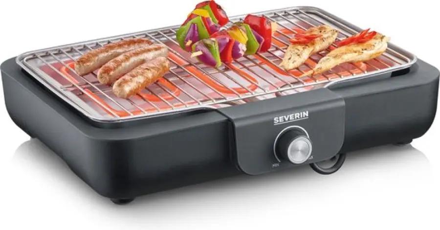 Met de Severin PG 8554 tafelgrill haal je een stijlvol zwart apparaat in huis dat ideaal is voor snelle en smakelijke grillgerechten. Dankzij het compacte formaat en het ruime grilloppervlak van 37 x 29 cm kun je moeiteloos meerdere porties tegelijk bereiden. Of je nu worstjes, vlees of groenten wilt grillen, deze elektrische tafelgrill levert altijd perfecte resultaten.