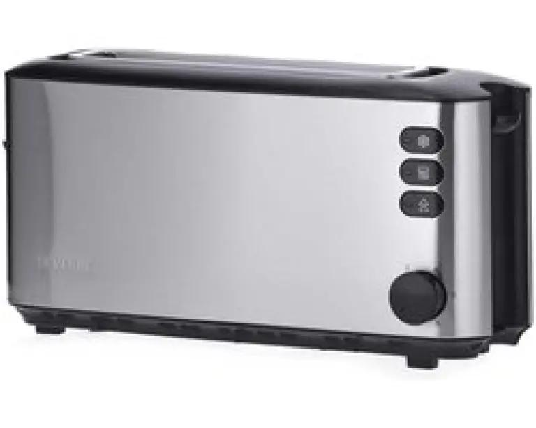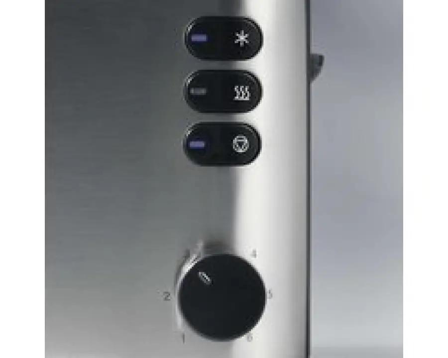 Met een krachtig vermogen van circa 1000 watt roostert deze broodrooster snel en efficiënt. Daarnaast zijn er handige functies zoals de ontdooistand en warmhoudfunctie, beide voorzien van controlelampjes, zodat je bevroren brood direct kunt roosteren of je brood kunt opwarmen zonder extra bruin te worden. De aparte uitwerpknop met indicatielampje zorgt voor een eenvoudige bediening en maakt het eruit halen van je brood heel makkelijk.